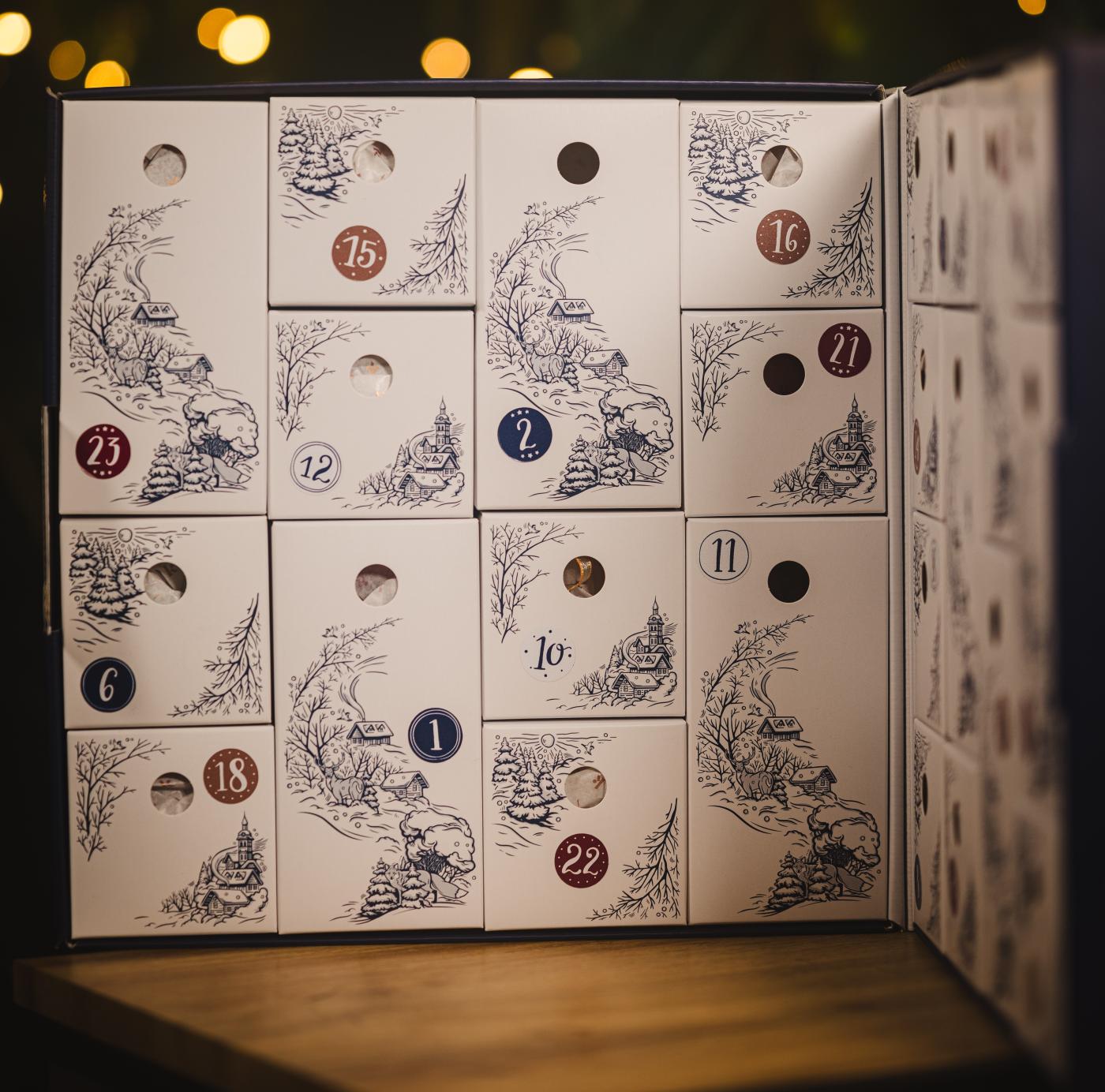 Pripravte sa na nezabudnuteľné Vianoce: adventný kalendár obsahuje 24 originálnych ručne fúkaných ozdôb so svätožiaru.