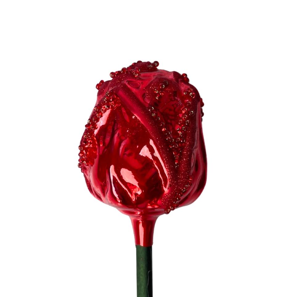 Fúkané sklo ornament ruža kvet červená, 1 kus