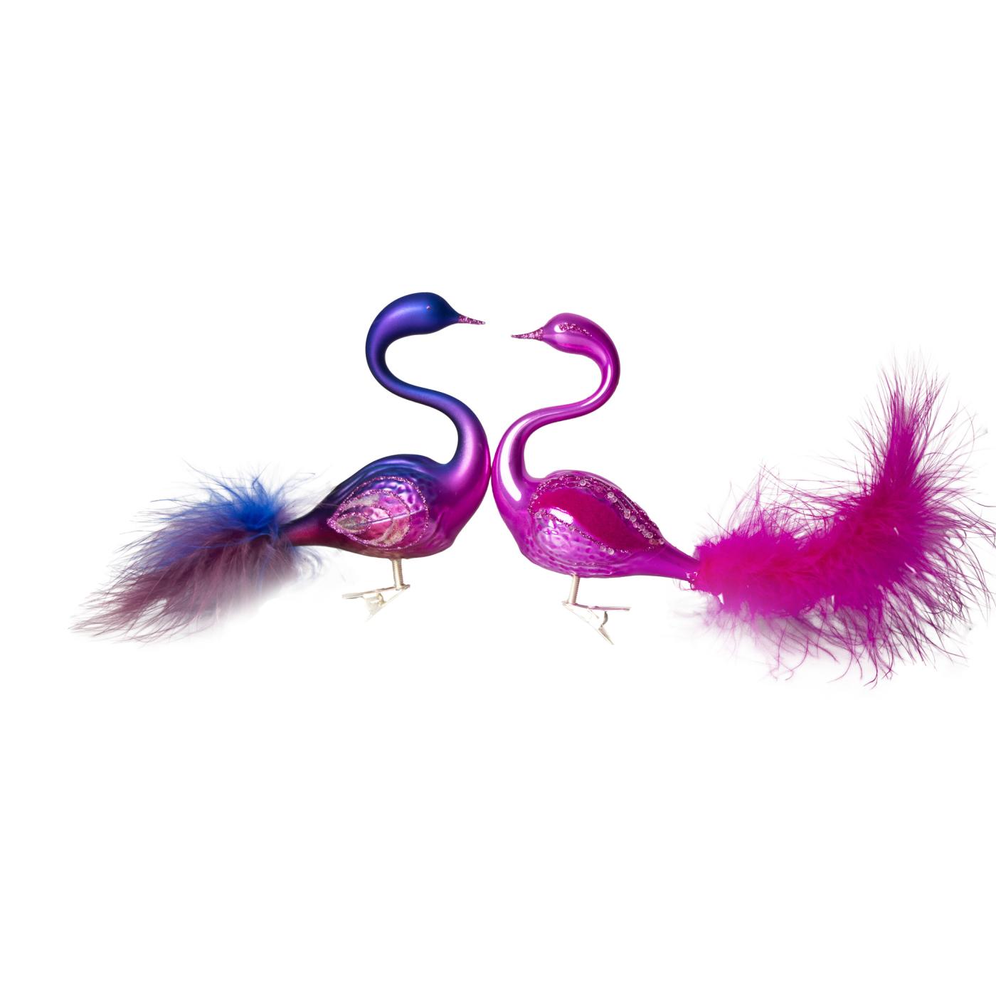 Jedným zo symbolov krásy, pôvabu, ladnosti a elegancie je labuť, a nielen preto sú labute súčasťou našich individuálnych kolekcií ozdôb. Pre ich obľúbenosť a celoročné využitie boli navrhnuté ďalšie originálne páry. Tak ako existuje niekoľko druhov labutí, aj táto kolekcia je veľmi rozmanitá z hľadiska farieb a dekorov. Základom je vždy labuť ručne vyfúknutá do formy a potom sa vďaka zručnosti fúkačov dokončí krk a hlava alebo sklenená korunka. Labute robia radosť naprieč generáciami a sú vhodné ako darček na všetky rodinné aj firemné udalosti. Ako symbol vernosti sú labute ideálne na svadby, či už ako dekorácia alebo darček pre novomanželov. Nebojte sa ozdobiť stromček množstvom labutí. Vďaka ich tvaru a prírodnému periu bude vyzerať ešte slávnostnejšie. Páry labutí sú krásne aj ako celoročné dekorácie na stôl, nielen na slávnostné príležitosti.
