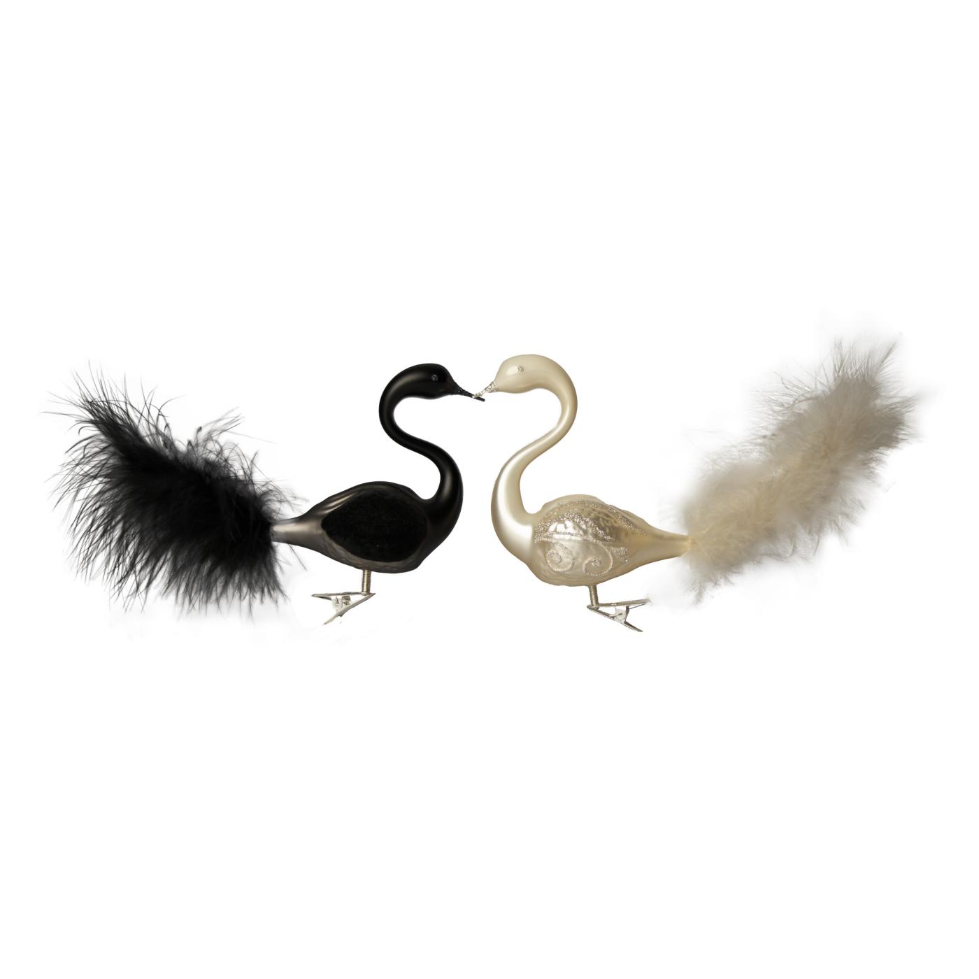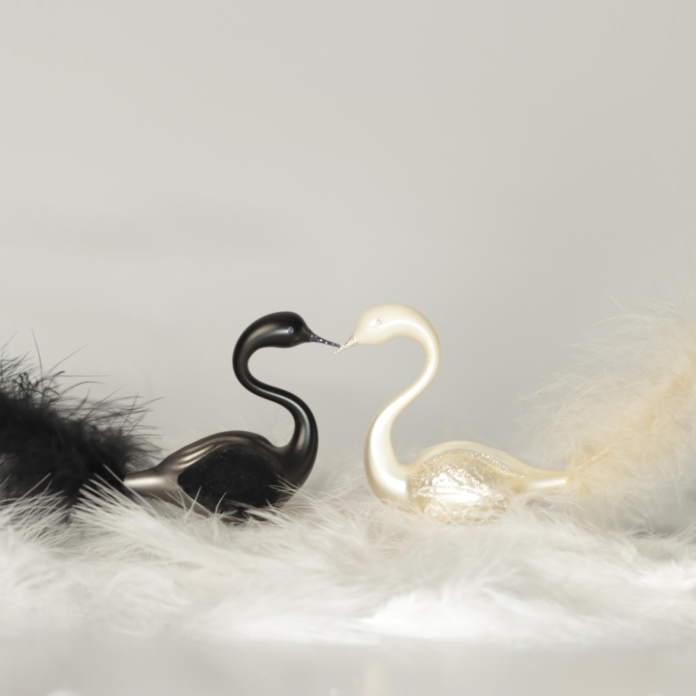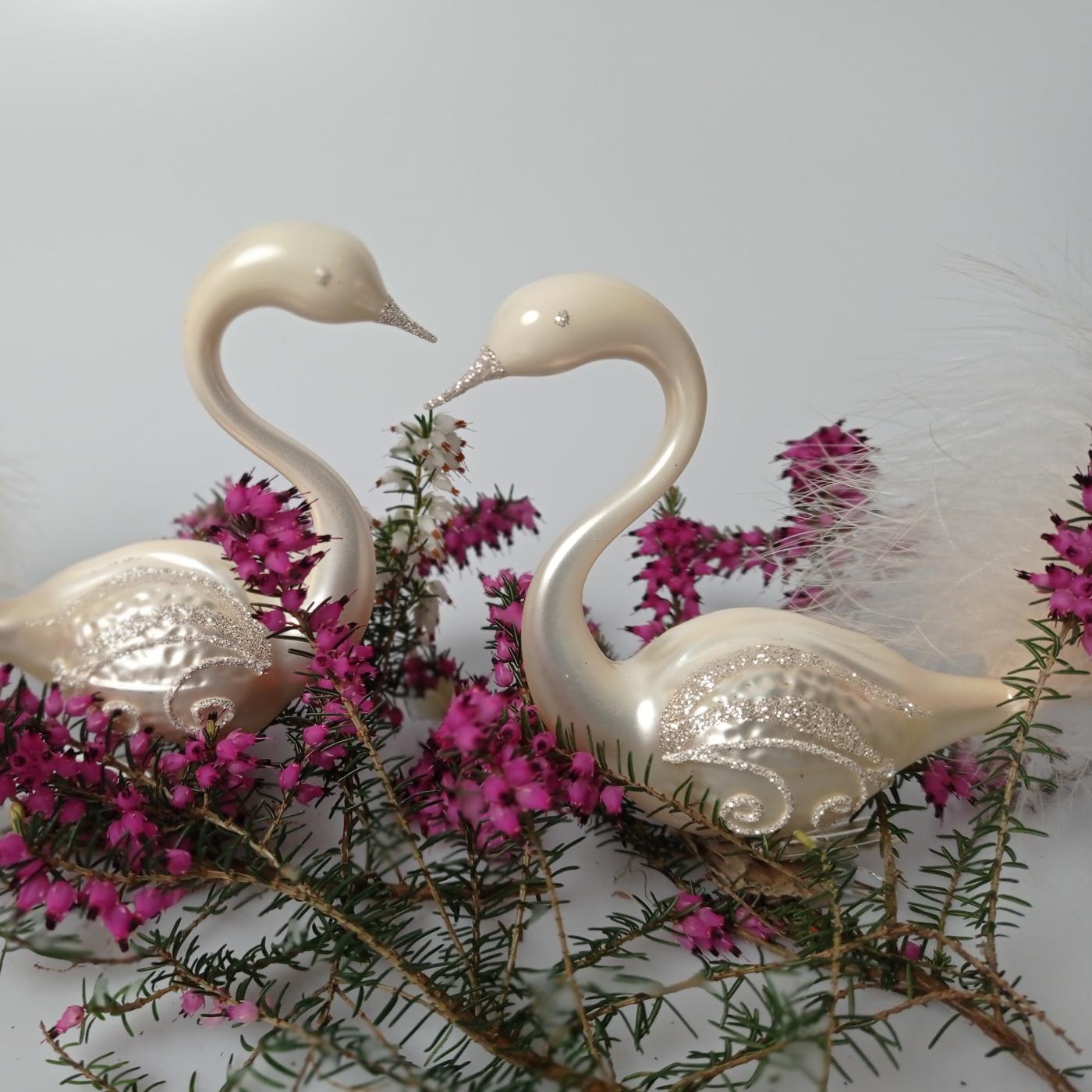 Jedným zo symbolov krásy, pôvabu, ladnosti a elegancie je labuť, a nielen preto sú labute súčasťou našich individuálnych kolekcií ozdôb. Pre ich obľúbenosť a celoročné využitie boli navrhnuté ďalšie originálne páry. Tak ako existuje niekoľko druhov labutí, aj táto kolekcia je veľmi rozmanitá z hľadiska farieb a dekorov. Základom je vždy labuť ručne vyfúknutá do formy a potom sa vďaka zručnosti fúkačov dokončí krk a hlava alebo sklenená korunka. Labute robia radosť naprieč generáciami a sú vhodné ako darček na všetky rodinné aj firemné udalosti. Ako symbol vernosti sú labute ideálne na svadby, či už ako dekorácia alebo darček pre novomanželov. Nebojte sa ozdobiť stromček množstvom labutí. Vďaka ich tvaru a prírodnému periu bude vyzerať ešte slávnostnejšie. Páry labutí sú krásne aj ako celoročné dekorácie na stôl, nielen na slávnostné príležitosti.