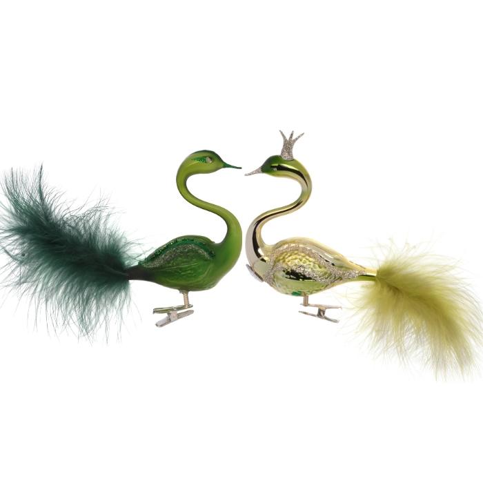 Jedným zo symbolov krásy, pôvabu, ladnosti a elegancie je labuť, a nielen preto sú labute súčasťou našich individuálnych kolekcií ozdôb. Pre ich obľúbenosť a celoročné využitie boli navrhnuté ďalšie originálne páry. Tak ako existuje niekoľko druhov labutí, aj táto kolekcia je veľmi rozmanitá z hľadiska farieb a dekorov. Základom je vždy labuť ručne vyfúknutá do formy a potom sa vďaka zručnosti fúkačov dokončí krk a hlava alebo sklenená korunka. Labute robia radosť naprieč generáciami a sú vhodné ako darček na všetky rodinné aj firemné udalosti. Ako symbol vernosti sú labute ideálne na svadby, či už ako dekorácia alebo darček pre novomanželov. Nebojte sa ozdobiť stromček množstvom labutí. Vďaka ich tvaru a prírodnému periu bude vyzerať ešte slávnostnejšie. Páry labutí sú krásne aj ako celoročné dekorácie na stôl, nielen na slávnostné príležitosti.