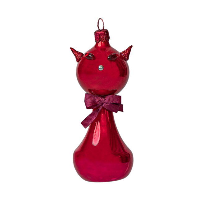 Táto kolekcia vznikla vďaka vám, konkrétne všetkým, ktorí ste sa nás pýtali, či máme ozdobu v tvare mačky... a keďže sme žiadnu nemali, jednu sme vyhodili do vzduchu a vyrobili sklenené uši a chvost. Dúfam, že sa vám to bude páčiť! Mačky sú zdobené rôznymi technikami, niektoré sú pekné vďaka flockingu, iné sú lesklé alebo matné. Ich oči sú z oválnych alebo brúsených sklenených českých kamienkov rôznych farieb. Tak ako mačky milujú pokoj, ticho a relaxáciu, môže táto ozdoba slúžiť ako pripomienka, aby ste mysleli na seba a dopriali si pokoj a pohodu nielen na Vianoce, rovnako ako mačky! Táto sklenená ozdoba poteší nielen majiteľov mačiek, ale aj tých, ktorí ocenia hravosť. Môžete ju zavesiť nielen tradične na stromček, ale aj ako interiérovú dekoráciu. Naša sklenená mačka je výnimočná aj tým, že je to takmer jediná ozdoba, ktorú môžete položiť na stôl a nikam sa vám nezunuje :-)
