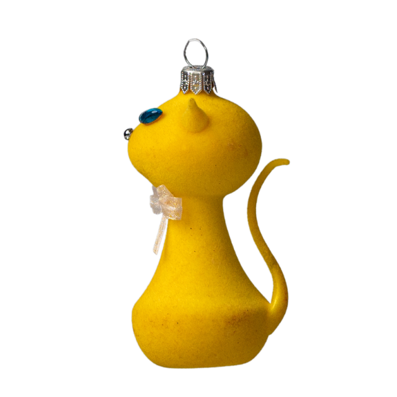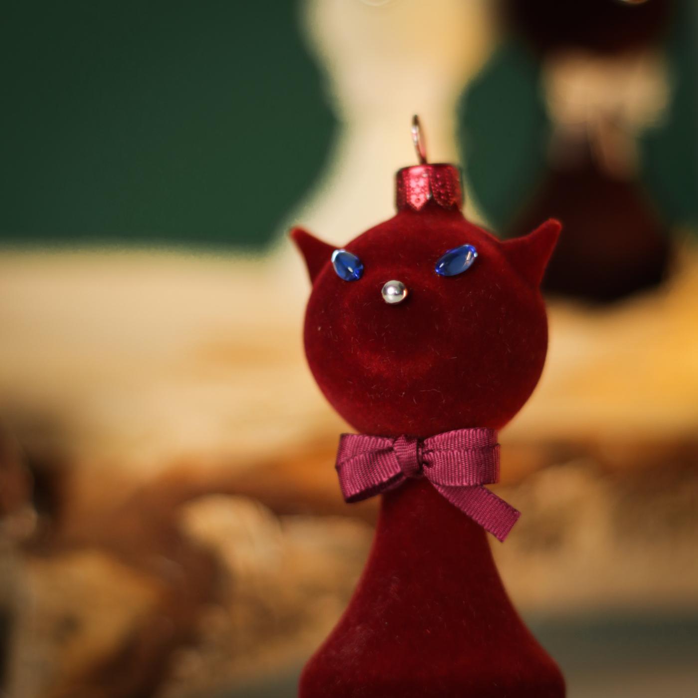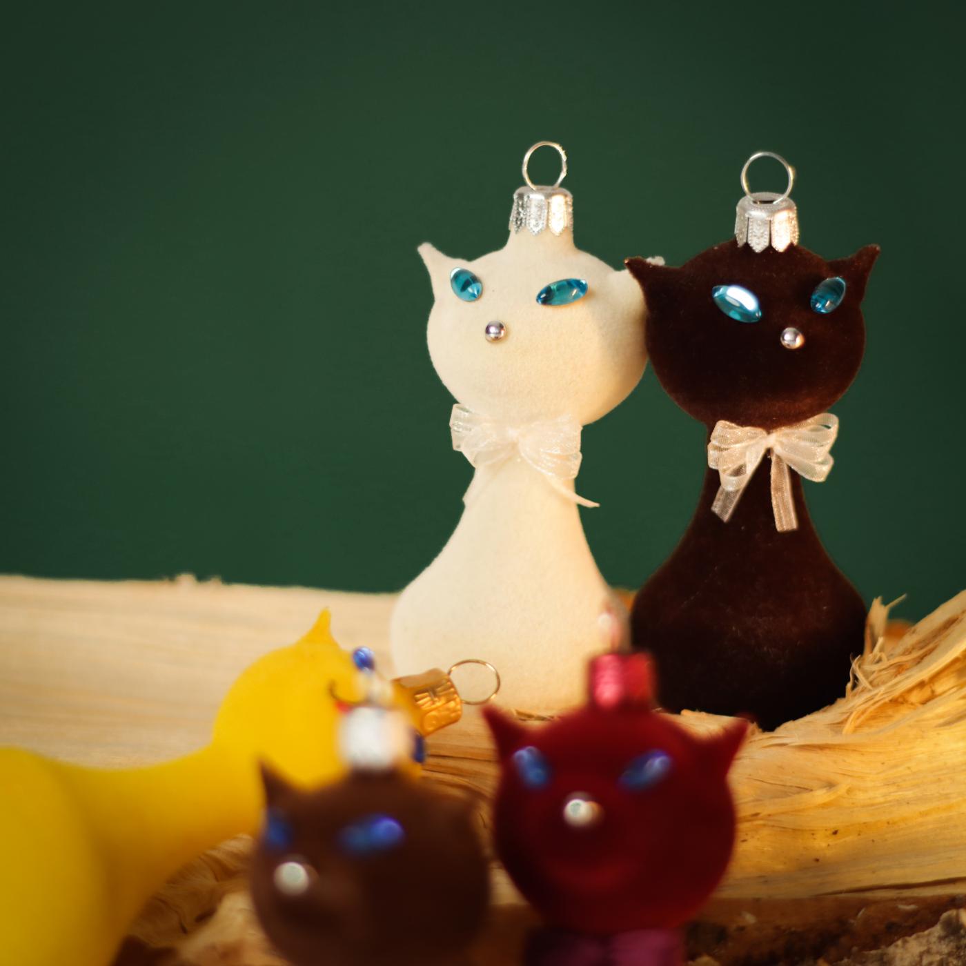 Táto kolekcia vznikla vďaka vám, konkrétne všetkým, ktorí ste sa nás pýtali, či máme ozdobu v tvare mačky... a keďže sme žiadnu nemali, jednu sme vyhodili do vzduchu a vyrobili sklenené uši a chvost. Dúfam, že sa vám to bude páčiť! Mačky sú zdobené rôznymi technikami, niektoré sú pekné vďaka flockingu, iné sú lesklé alebo matné. Ich oči sú z oválnych alebo brúsených sklenených českých kamienkov rôznych farieb. Tak ako mačky milujú pokoj, ticho a relaxáciu, môže táto ozdoba slúžiť ako pripomienka, aby ste mysleli na seba a dopriali si pokoj a pohodu nielen na Vianoce, rovnako ako mačky! Táto sklenená ozdoba poteší nielen majiteľov mačiek, ale aj tých, ktorí ocenia hravosť. Môžete ju zavesiť nielen tradične na stromček, ale aj ako interiérovú dekoráciu. Naša sklenená mačka je výnimočná aj tým, že je to takmer jediná ozdoba, ktorú môžete položiť na stôl a nikam sa vám nezunuje :-)