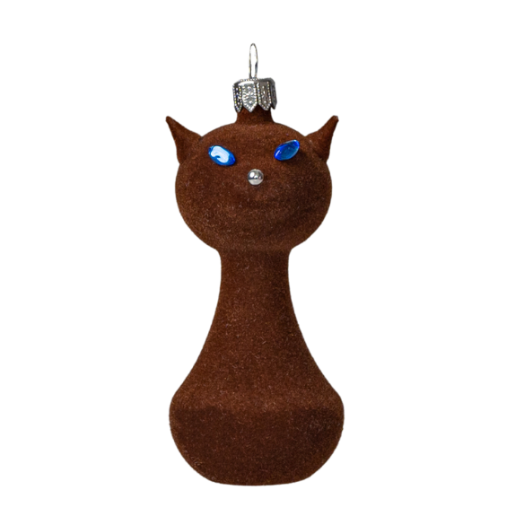 Táto kolekcia vznikla vďaka vám, konkrétne všetkým, ktorí ste sa nás pýtali, či máme ozdobu v tvare mačky... a keďže sme žiadnu nemali, jednu sme vyhodili do vzduchu a vyrobili sklenené uši a chvost. Dúfam, že sa vám to bude páčiť! Mačky sú zdobené rôznymi technikami, niektoré sú pekné vďaka flockingu, iné sú lesklé alebo matné. Ich oči sú z oválnych alebo brúsených sklenených českých kamienkov rôznych farieb. Tak ako mačky milujú pokoj, ticho a relaxáciu, môže táto ozdoba slúžiť ako pripomienka, aby ste mysleli na seba a dopriali si pokoj a pohodu nielen na Vianoce, rovnako ako mačky! Táto sklenená ozdoba poteší nielen majiteľov mačiek, ale aj tých, ktorí ocenia hravosť. Môžete ju zavesiť nielen tradične na stromček, ale aj ako interiérovú dekoráciu. Naša sklenená mačka je výnimočná aj tým, že je to takmer jediná ozdoba, ktorú môžete položiť na stôl a nikam sa vám nezunuje :-)