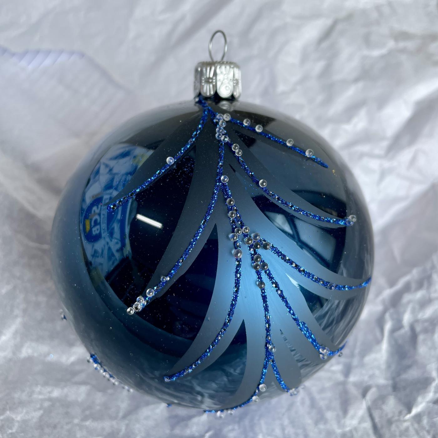 Modrá baňka s vianočným stromčekom, 1 ks - popis: