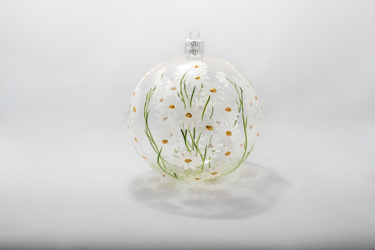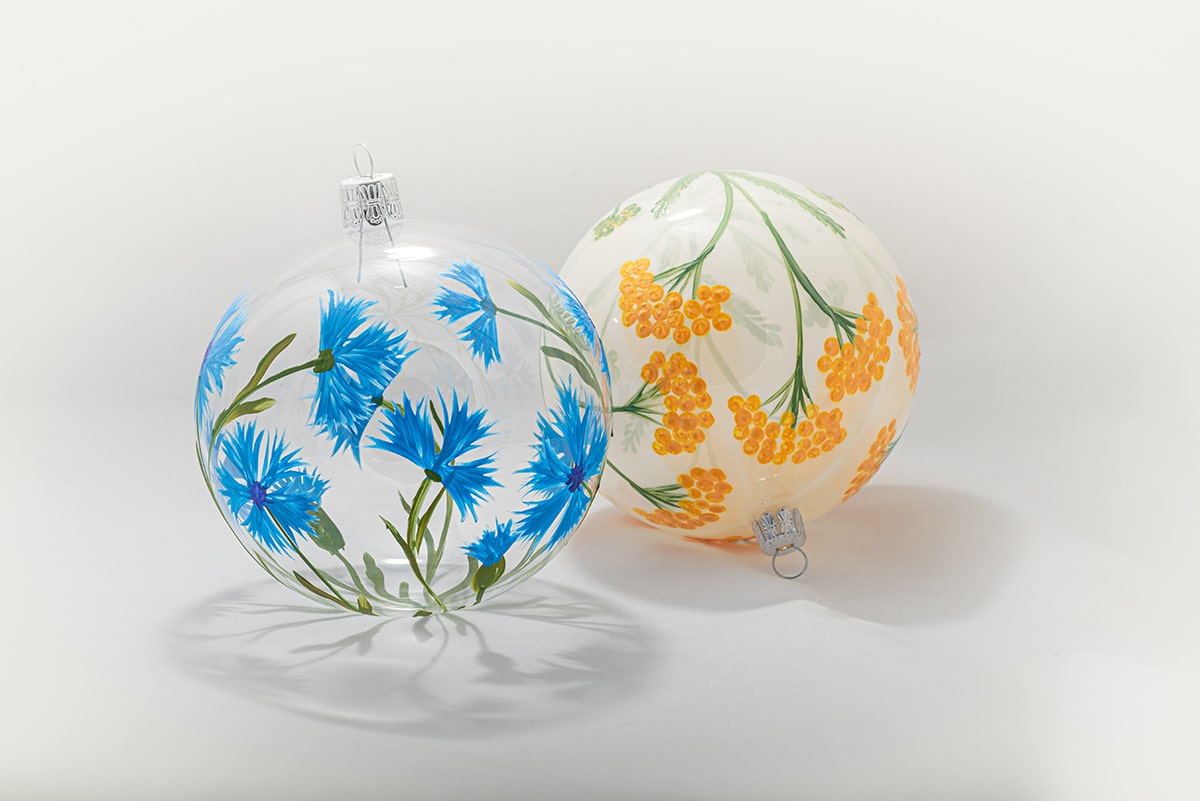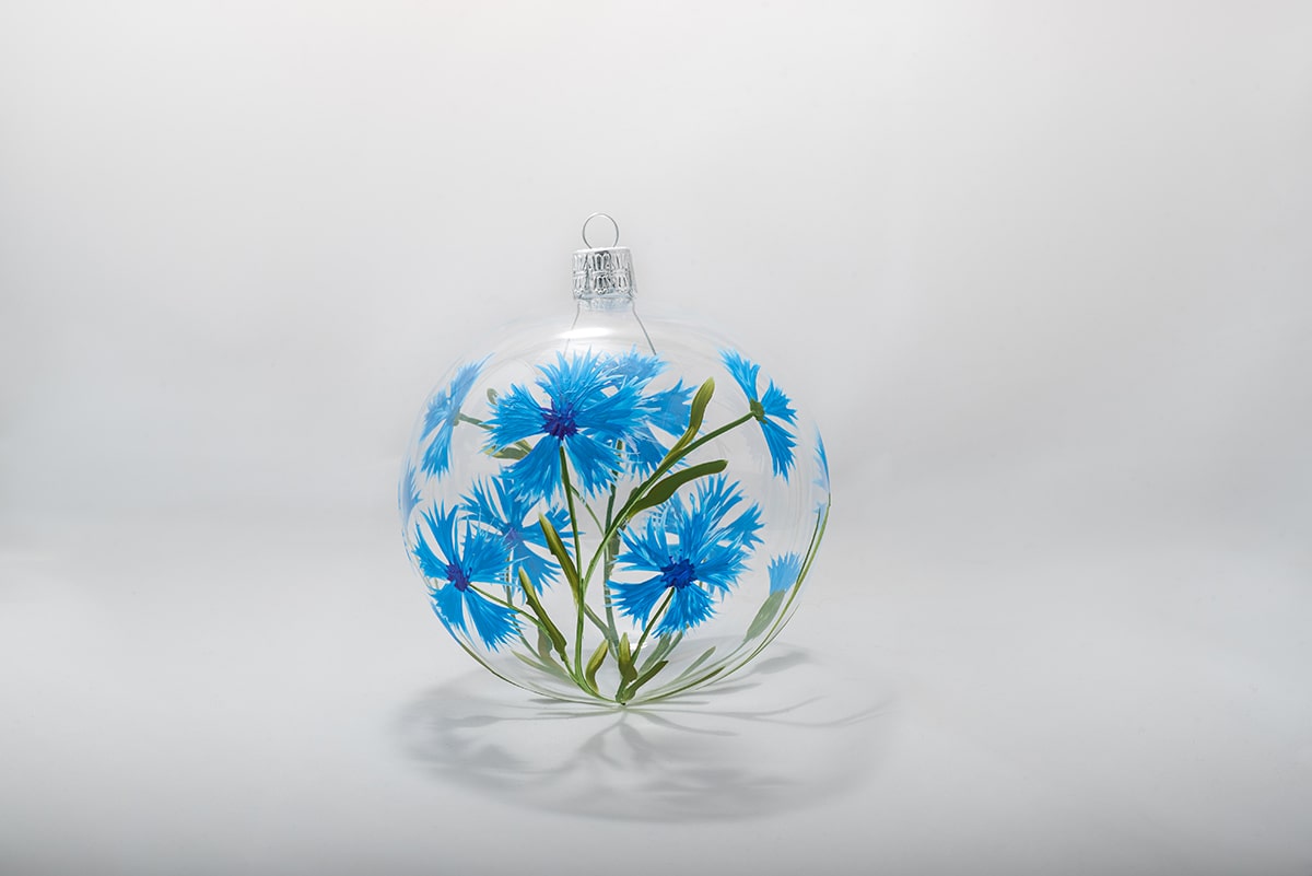 Sklenené ozdoby môžu zachytiť takmer čokoľvek. Najprv sme vyskúšali letné lúčne kvety. Priehľadné banky sú ručne maľované lúčnymi kvetmi v realistických farbách. Česká lúka poteší tých, ktorí uprednostňujú minimalizmus a ocenia čas maliarov, ktorý venujú každej baňke. Tieto priehľadné ozdoby sa budú vynímať na neutrálnom stromčeku aj ako samostatná dekorácia do domácnosti alebo kancelárie.