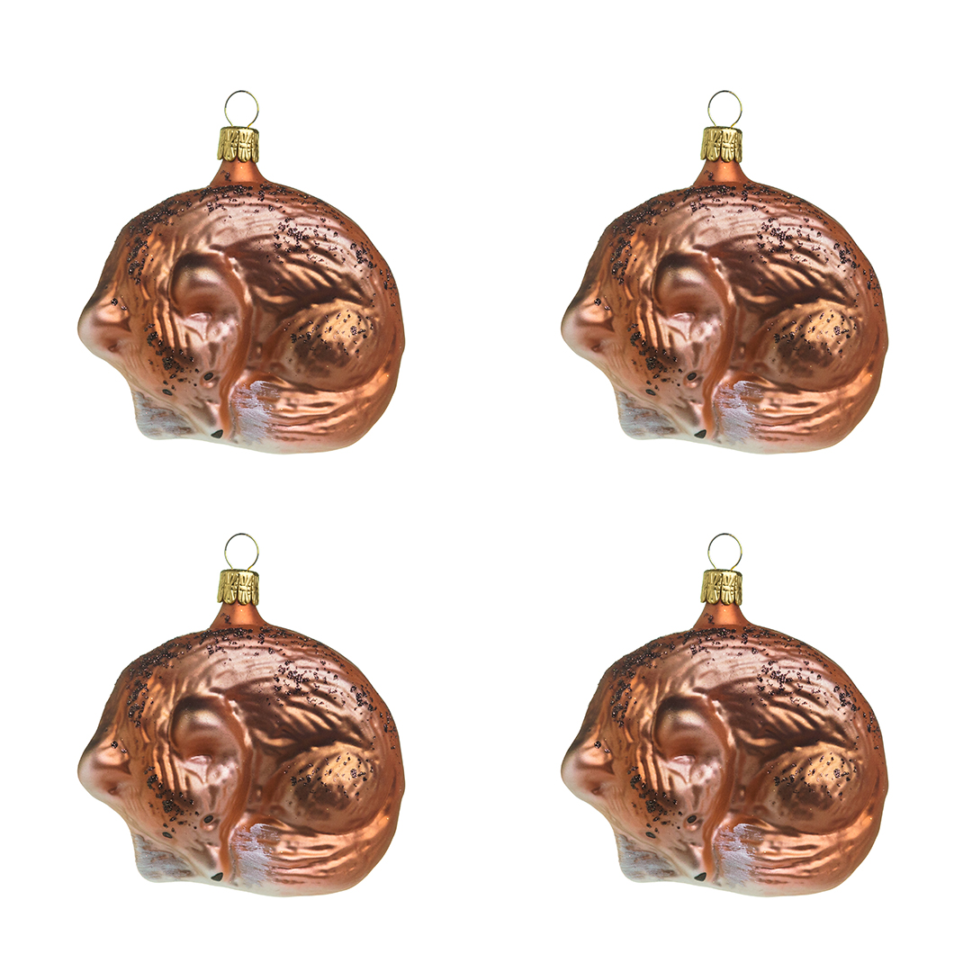 Sada sklenených vianočných ozdôb - spiaca líška, 4 ks - popis: