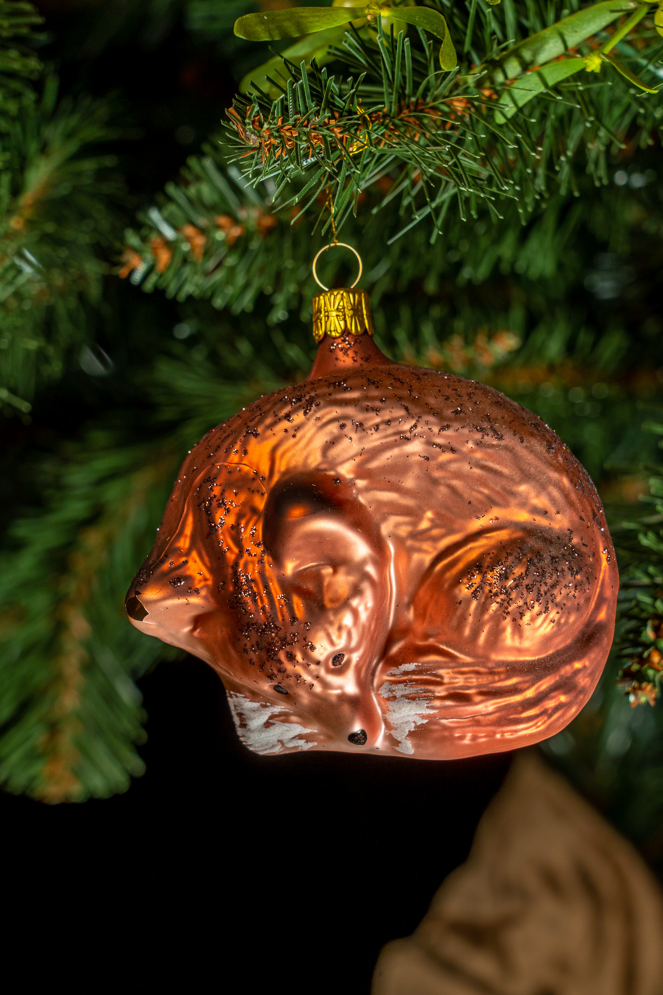 Sada sklenených vianočných ozdôb - spiaca líška, 4 ks