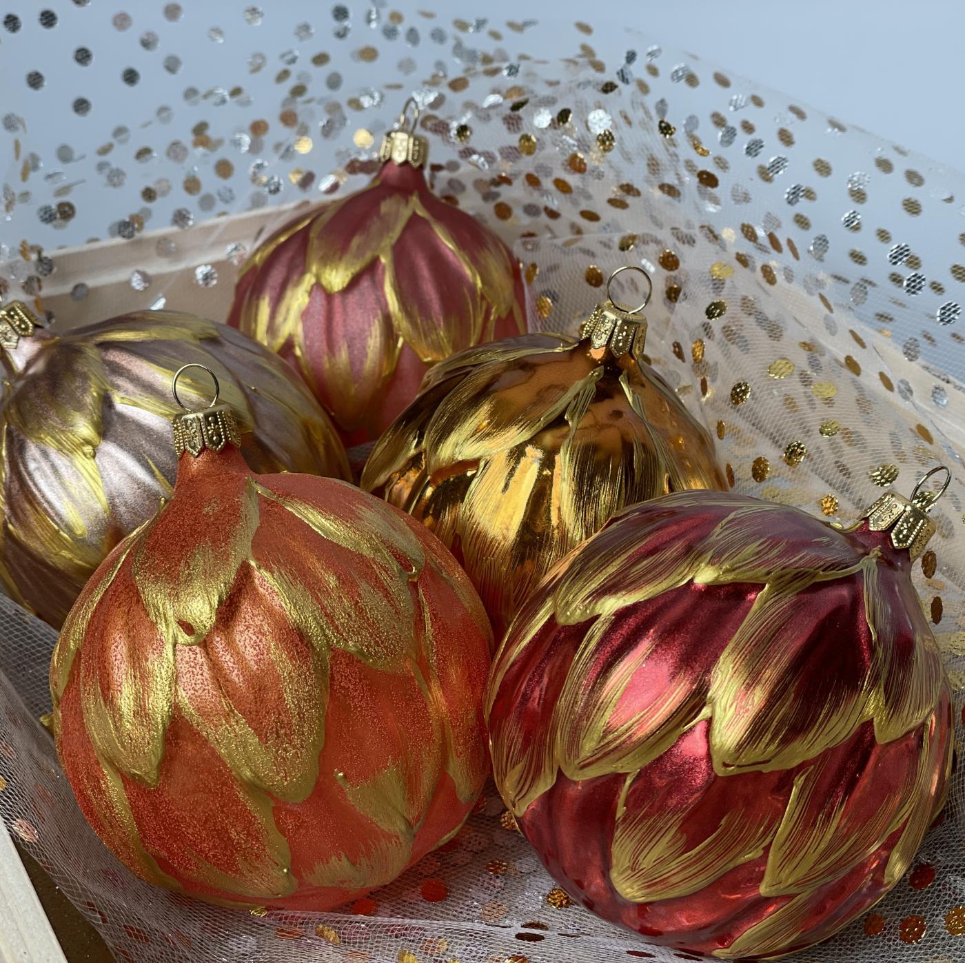 Sada vianočných dekorácií secesné artičoky so zlatom, 6 ks - popis: