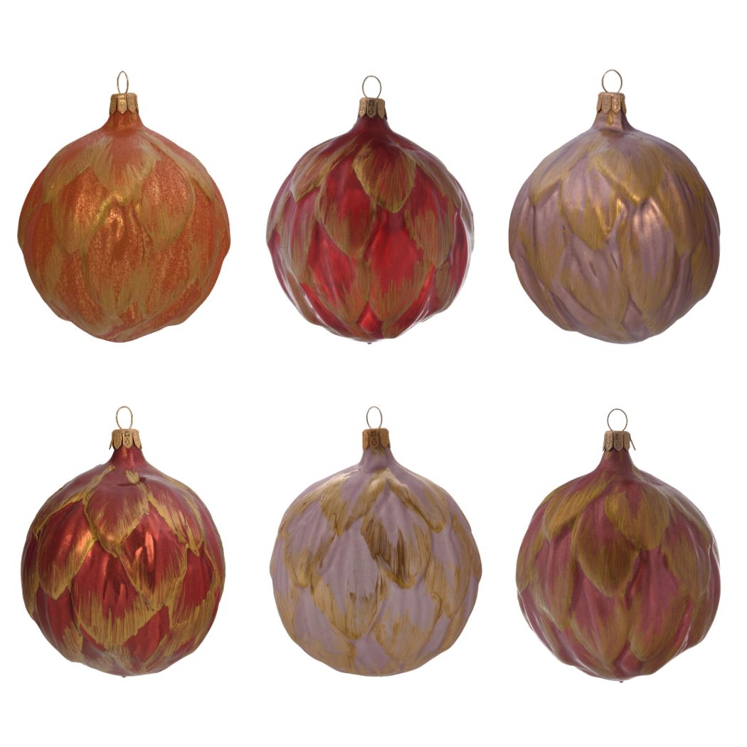 Sada vianočných dekorácií secesné artičoky so zlatom, 6 ks