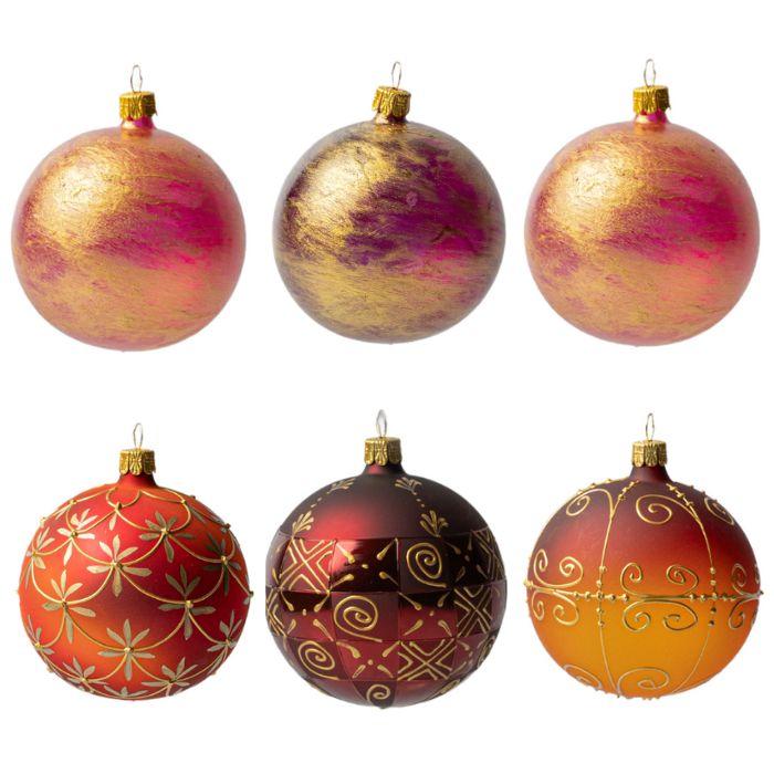Sada vianočných ozdôb Secese - platinové a vzorované banky, 6 ks - popis: