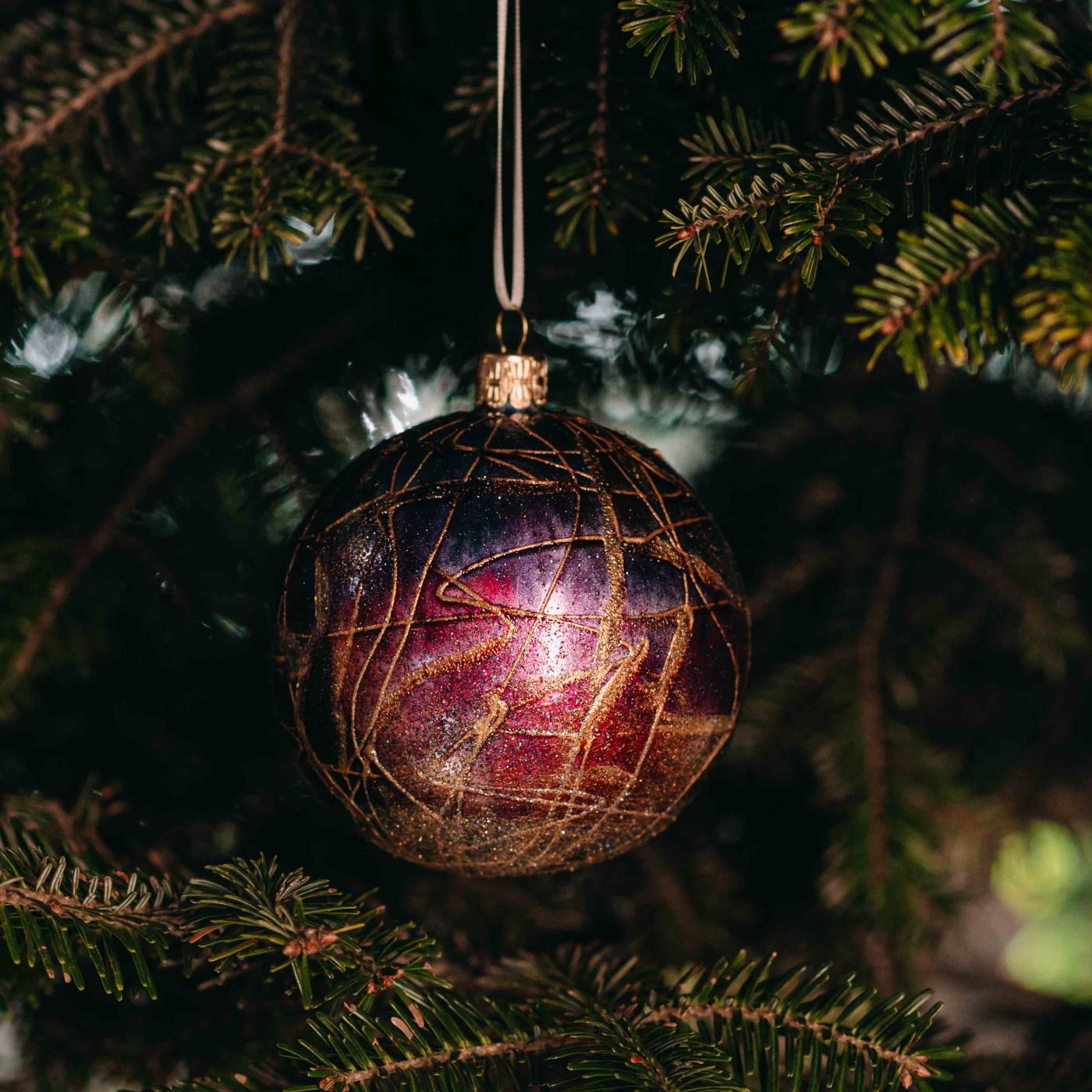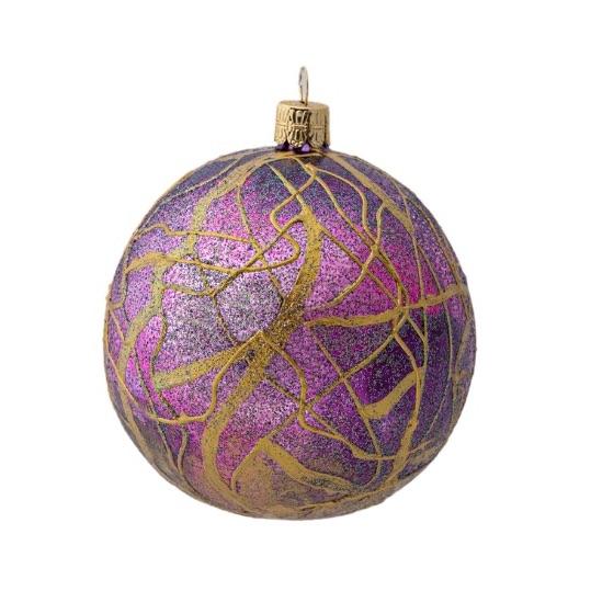Secesná vianočná ozdoba fialová so zlatými linkami, 1 kus