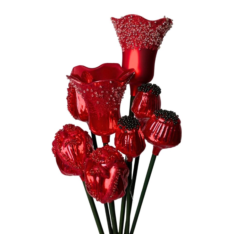 Sklenená kytica červená, 8 ks - popis: