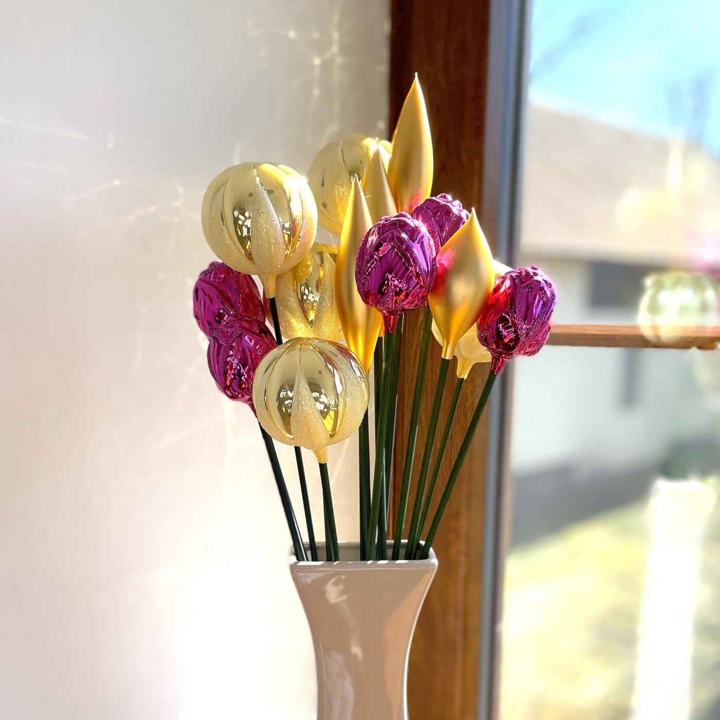 Kvety sú jedným z najčastejších darčekov pre ženy, ale ich krása je bohužiaľ pominuteľná, a pretože chceme prinášať radosť po celý rok, vytvorili sme kolekciu sklenených kytíc. Sortiment sklenených kytíc stále rozširujeme, ale už teraz v ňom nájdete tradičné ruže vo viacerých farbách, ako aj pestré púčiky motýľov. Naše sklenené kvety nikdy nevyblednú, a preto sú vhodným darčekom aj dekoráciou. Sú vhodné do moderných aj vidieckych interiérov.