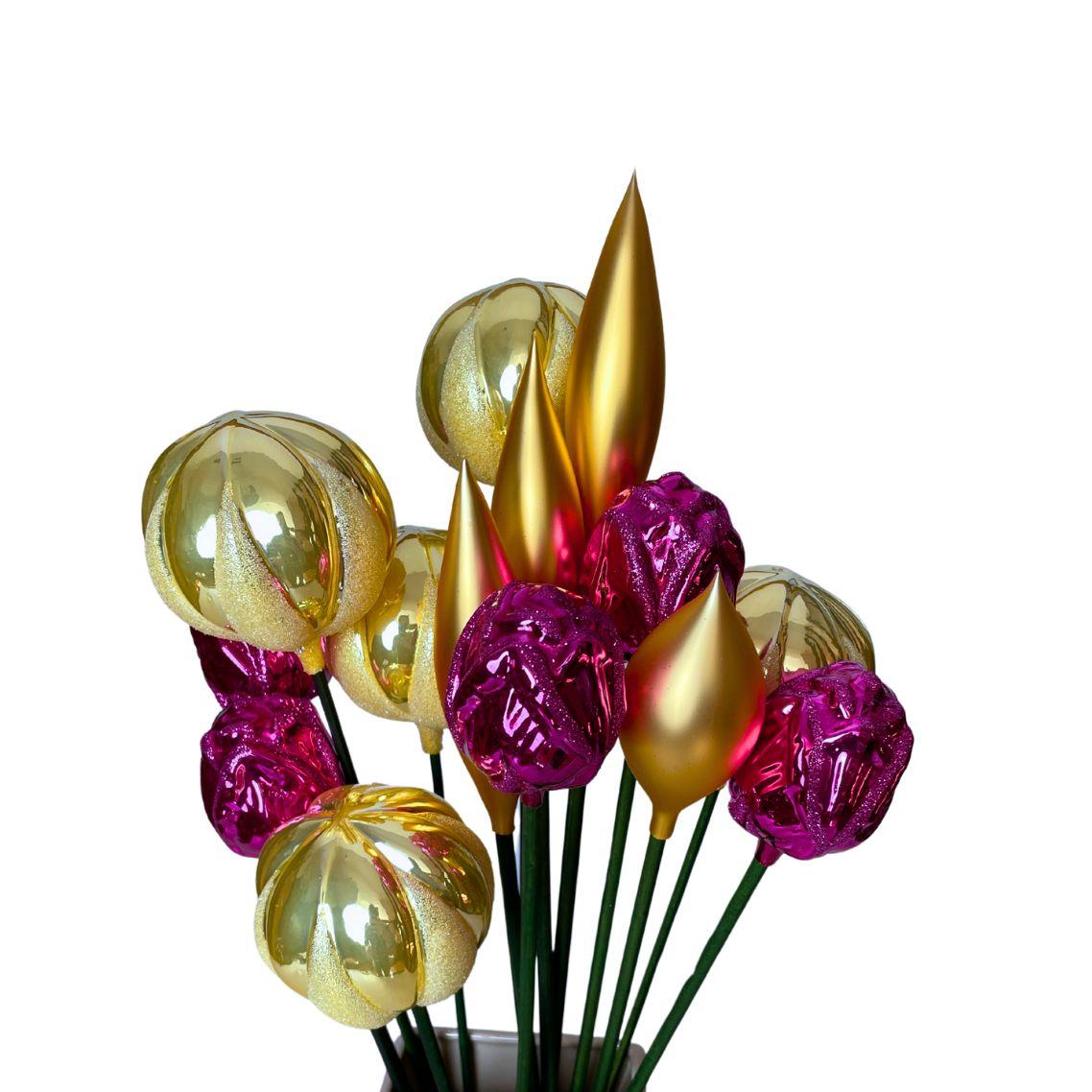 Ručne fúkané sklenené ozdoby na drevenej stopke.