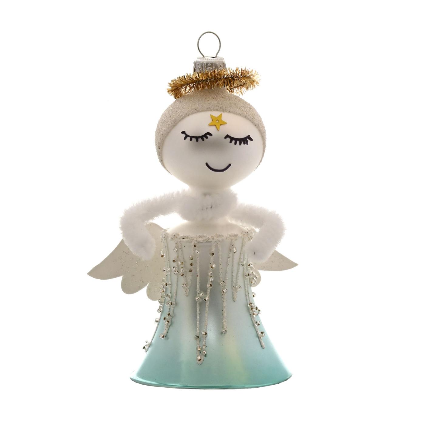 Sklenená ozdoba - Anjel s modrou sukňou, 1 kus