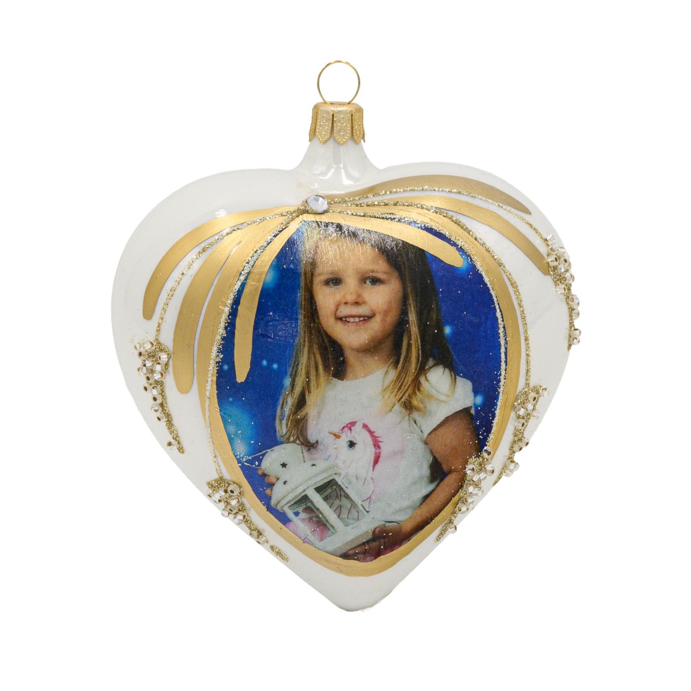 1 ks vianočná sklenená ozdoba v tvare srdca s vlastnou fotografiou (10 cm).