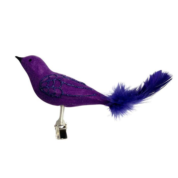 Sklenená ozdoba Semišový vták fialový, 1 kus