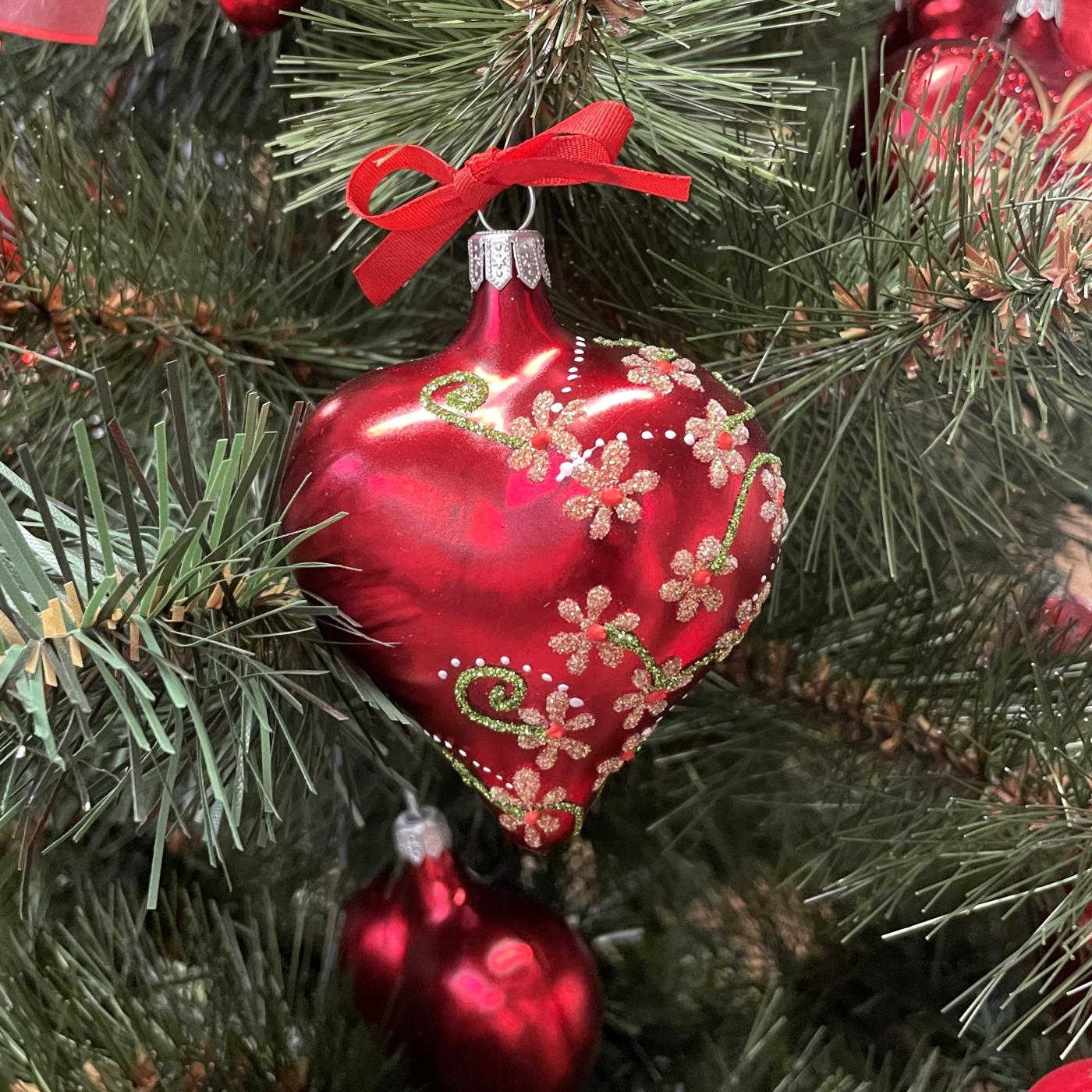 Sklenená ozdoba Srdce so zlatými kvetmi, 1 kus