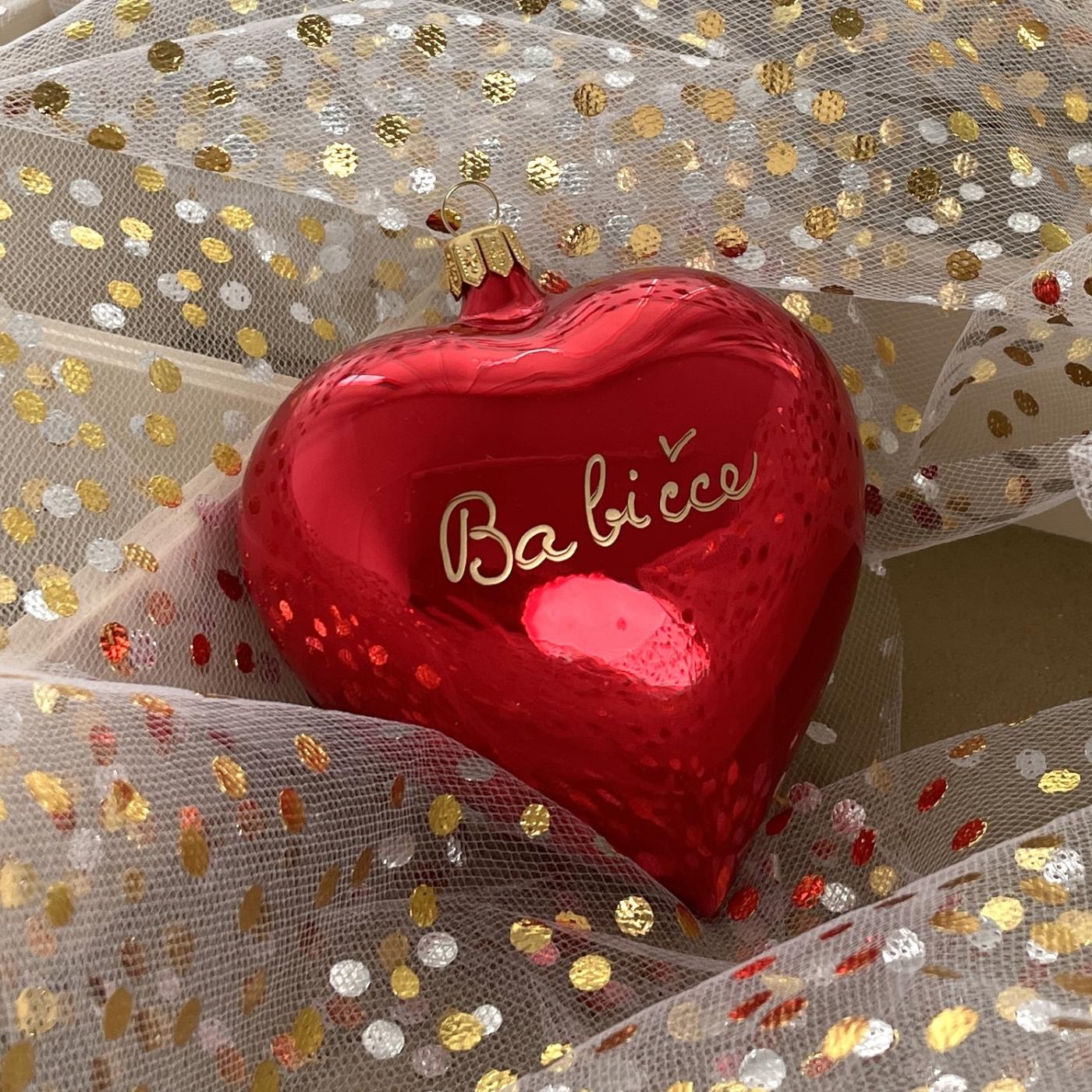 Ručně foukané červené srdce s ručním zlatým nápisem, které vyjádří lásku nebo poděkování i beze slov — nebo s nimi.