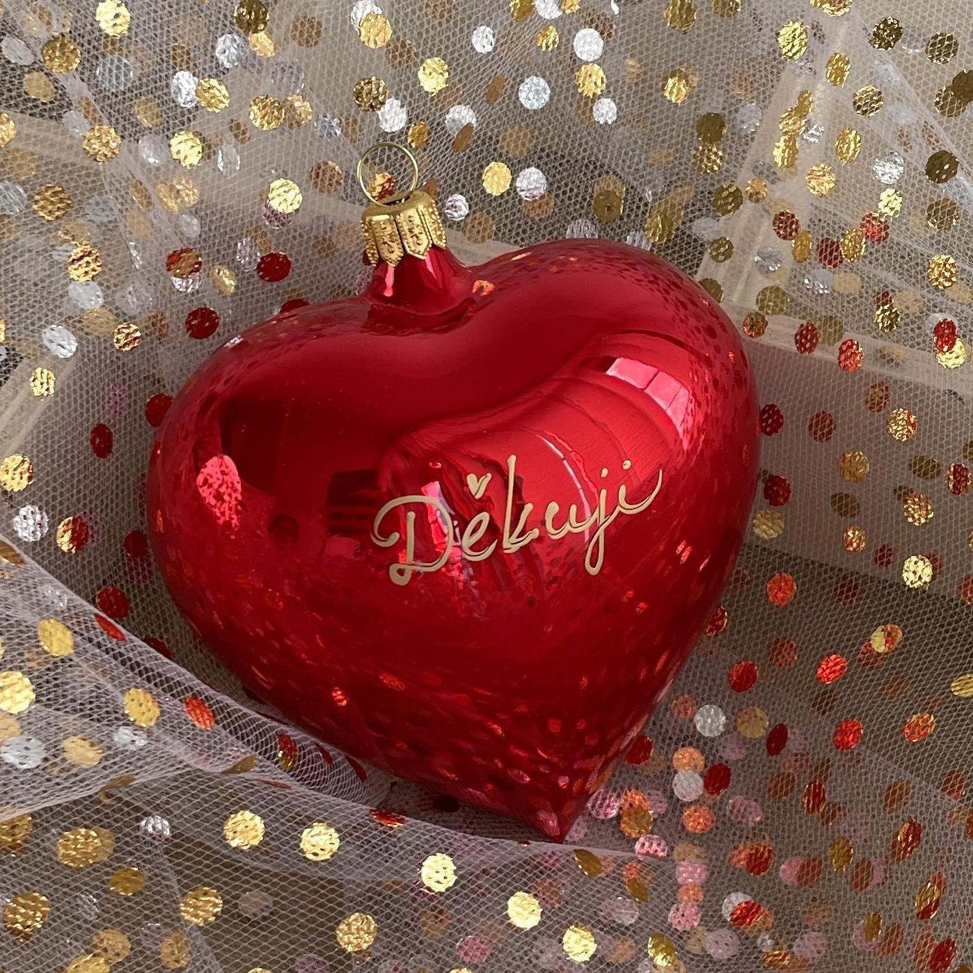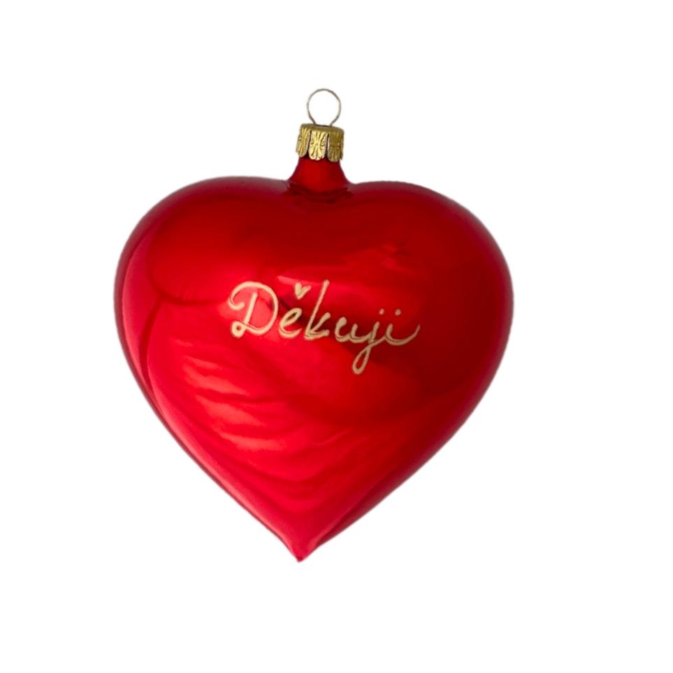 Sklenená ozdoba Veľké červené srdce s nápisom: ďakujem, 1 ks - popis: