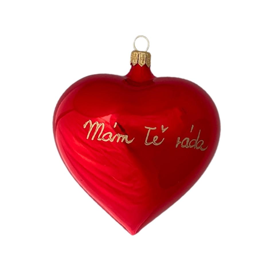 Červené srdce veľkosti 10 cm so zlatým nápisom.