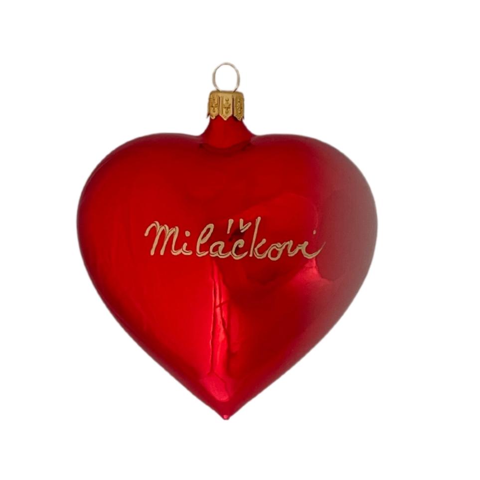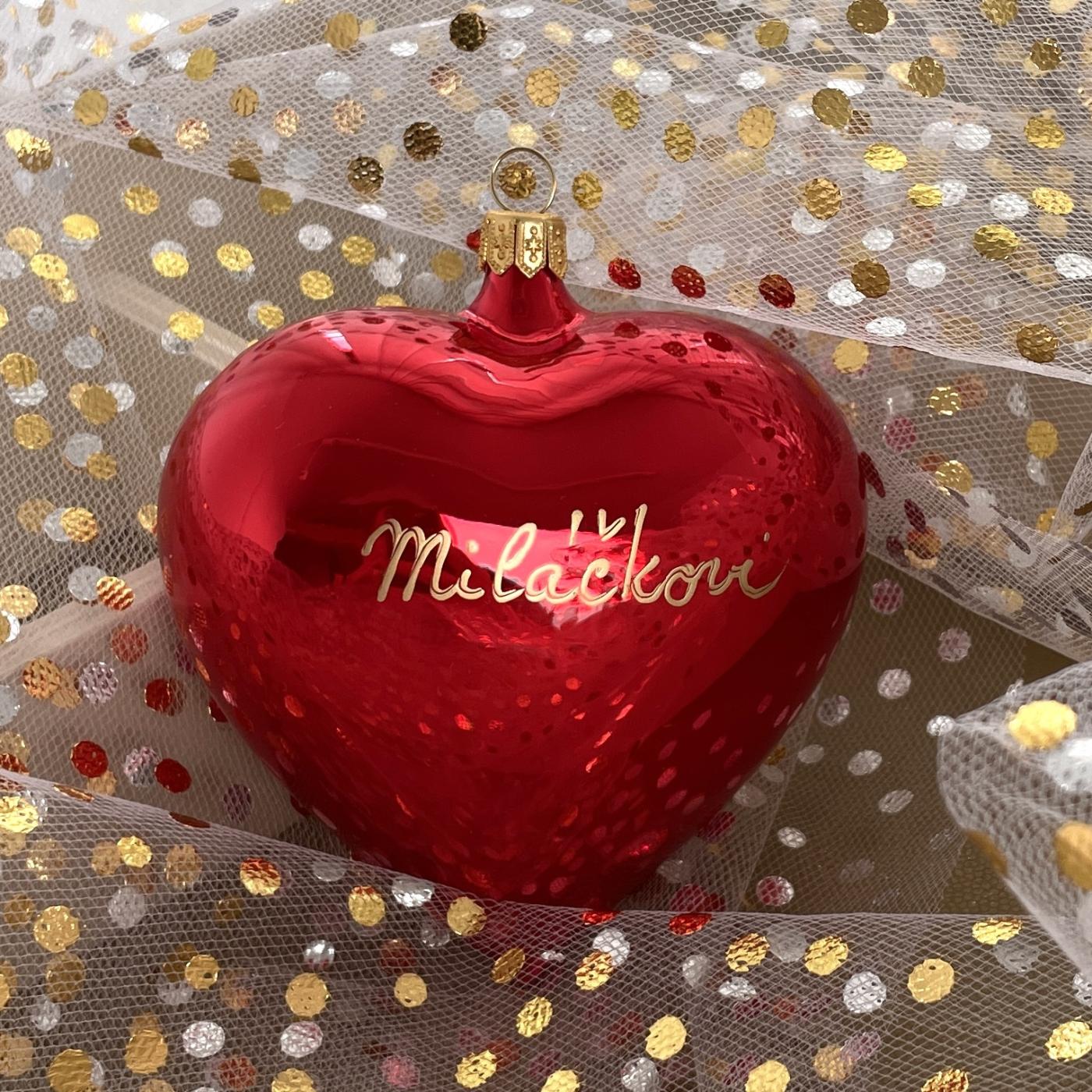 Červené srdce veľkosti 10 cm so zlatým nápisom.