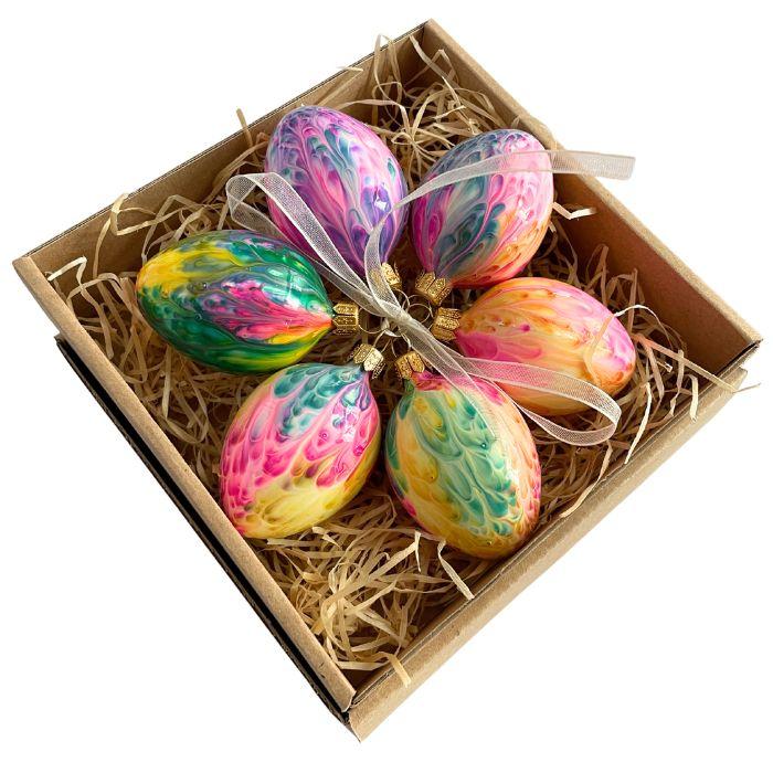 Sklenené ozdoby - jarná sada vajíčok Kahuri rainbow, 6 ks