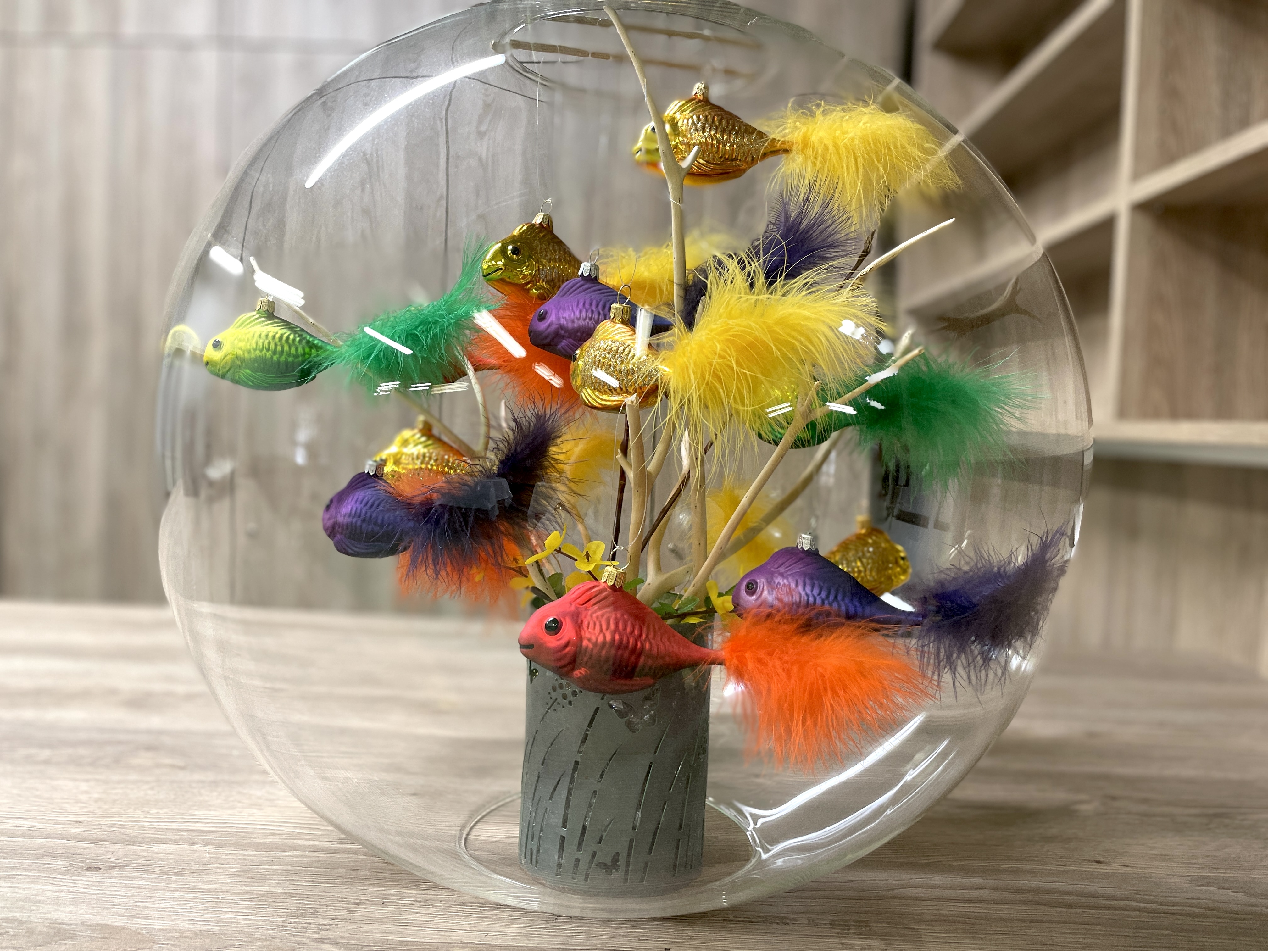 Jedným z dôležitých symbolov Vianoc sú ryby, takže v našich kotlinách sú to hlavne kapry :) V čínskej kultúre ryby symbolizujú hojnosť, ale predovšetkým sú jedným z dvanástich znamení zverokruhu. Keďže zlatá rybka má plniť želania a je veľmi žiadaná, naša zbierka farebných sklenených rybiek sa bez nej nezaobíde. Rybka z tejto kolekcie je vhodným darčekom bez ohľadu na vek a vďaka farebným prechodom a prírodnému mäkkému periu namiesto chvosta sa stane ozdobou každého stromčeka alebo stola. Vďaka širokej škále farieb vždy nájdete tú správnu rybku na stromček. Ak sa neviete rozhodnúť, nebojte sa ich zavesiť veľkú kopu. Ich chvosty urobia stromček ešte slávnostnejším. A ak si neviete vybrať, pozrite si aj kolekcie Basic.