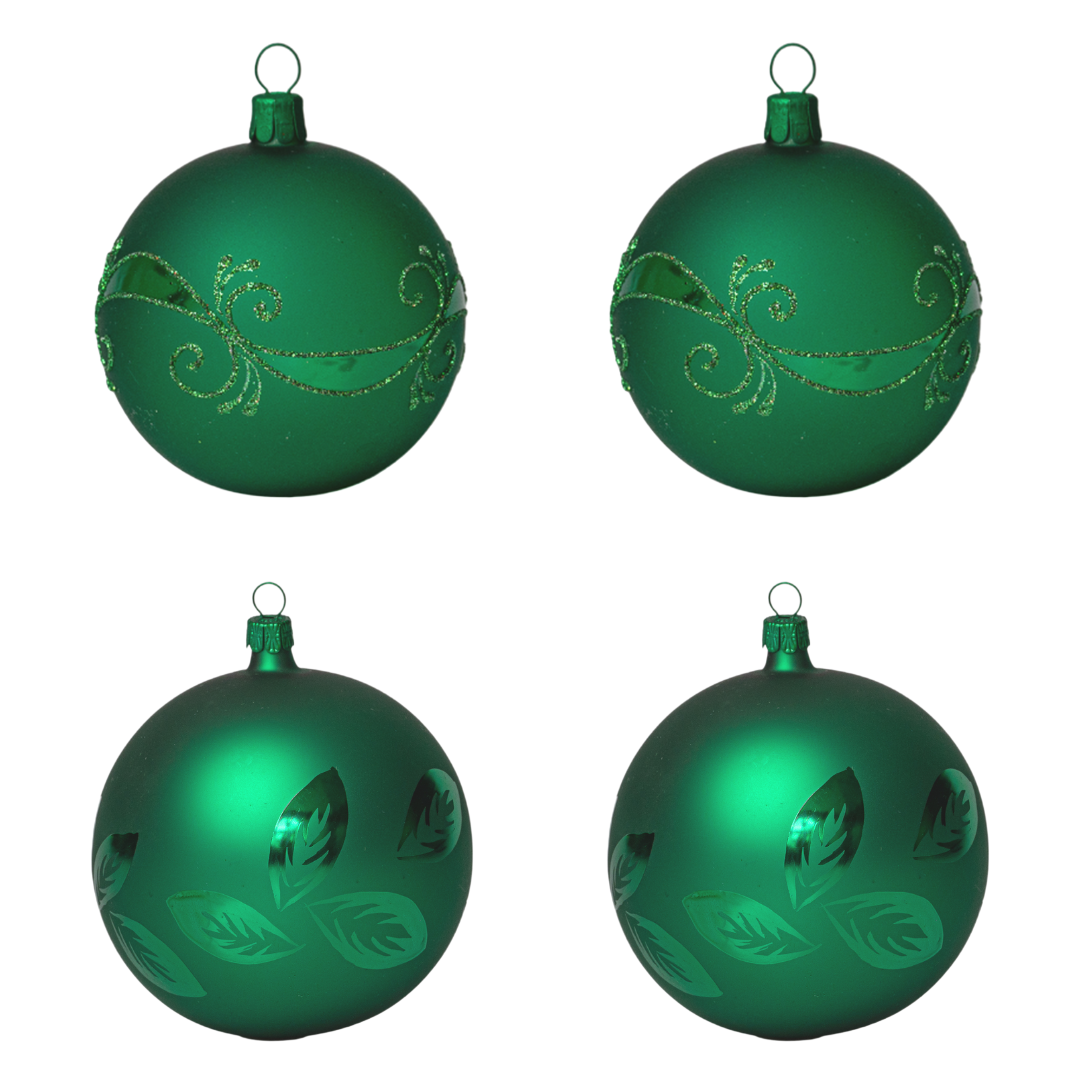 Základná zelená - Zelené listy 4 ks vianočných guliek.