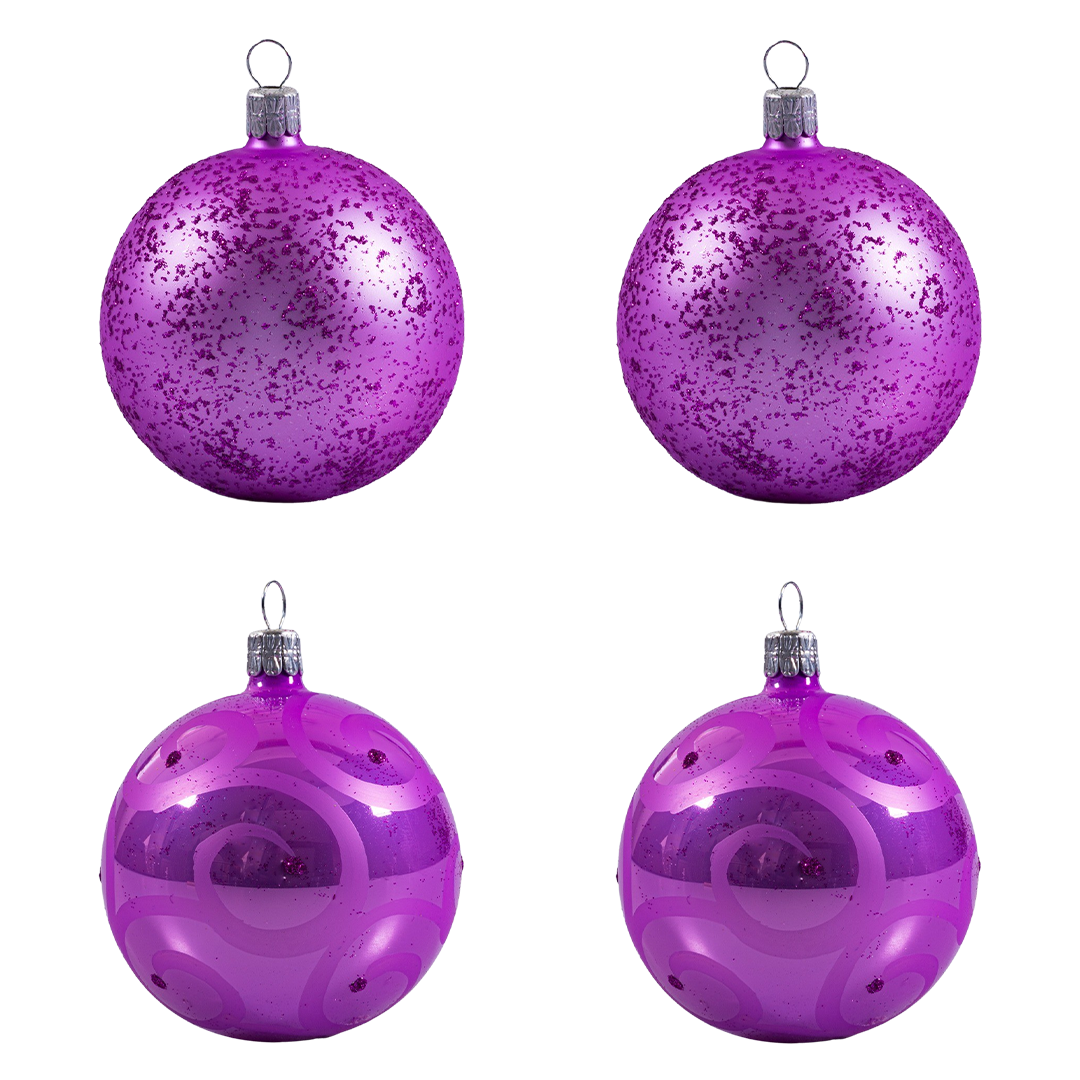 Sklenené vianočné ozdoby basic Lila - Lila snow set, 4 ks - popis: