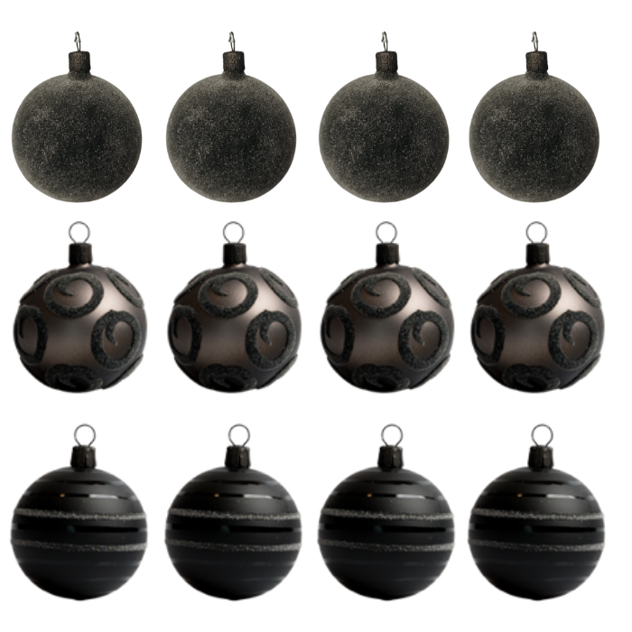 Basic Nero - Nero kolieska, čiary a semišové gule 12 ks vianočných gulí.