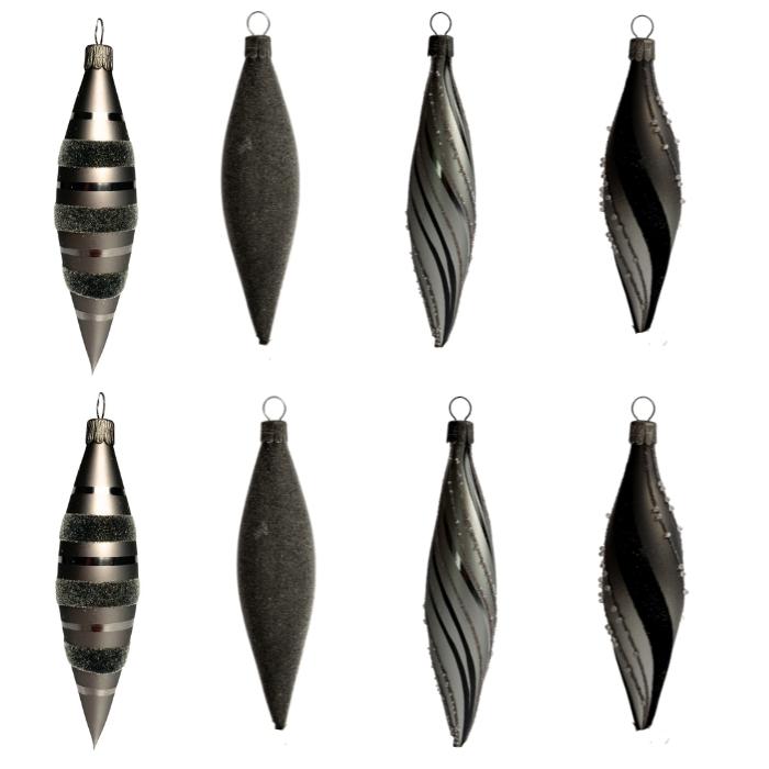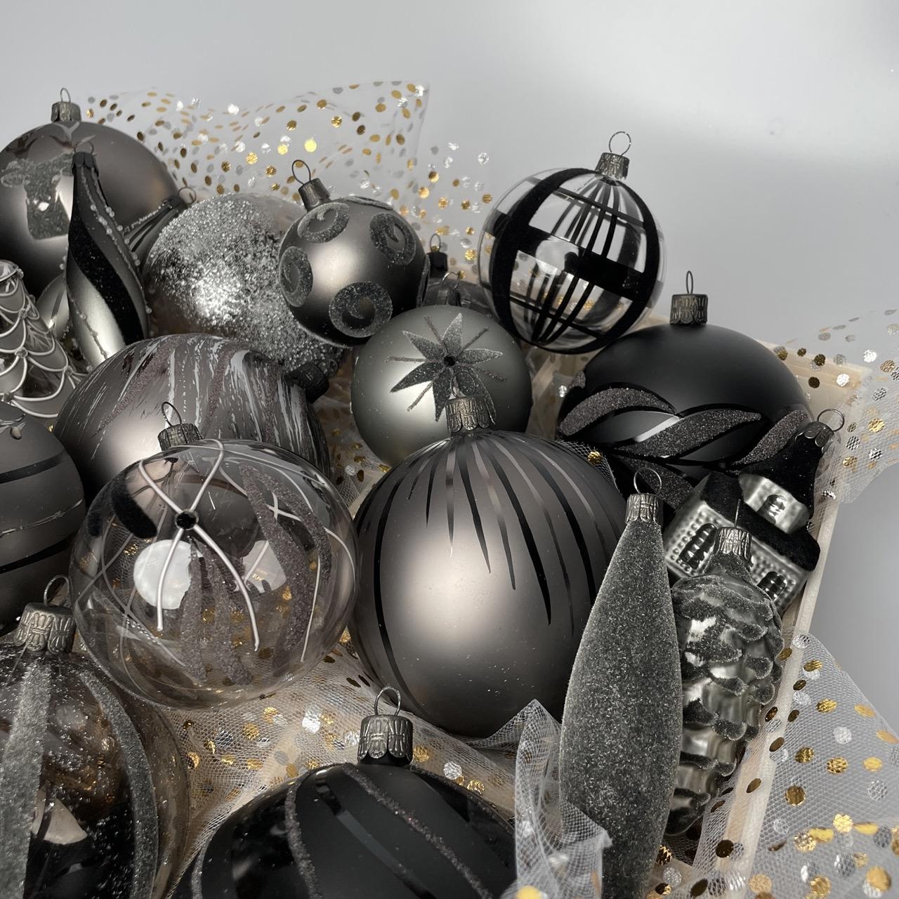 Ako osloviť mužov, nieto ešte mladých mužov? Čierna farba a jej odtiene, teda sivá, je moderná, nadčasová a prekvapivo výrazná aj na vianočnom stromčeku! Hoci ide o odtiene čiernej, kolekcia je prekvapivo jemná. Guľôčky sú zdobené pravidelnými vzormi vo flokovej úprave, po ktorých vzniká mäkký semišový povrch, ktorý pozýva na dotyk. Basic Nero zaujme všetkých, ktorí majú radi tradičné veci v modernej úprave. Kombinácia fúkaných vianočných ozdôb a čiernej farby nepochybne poteší nielen mužov.
