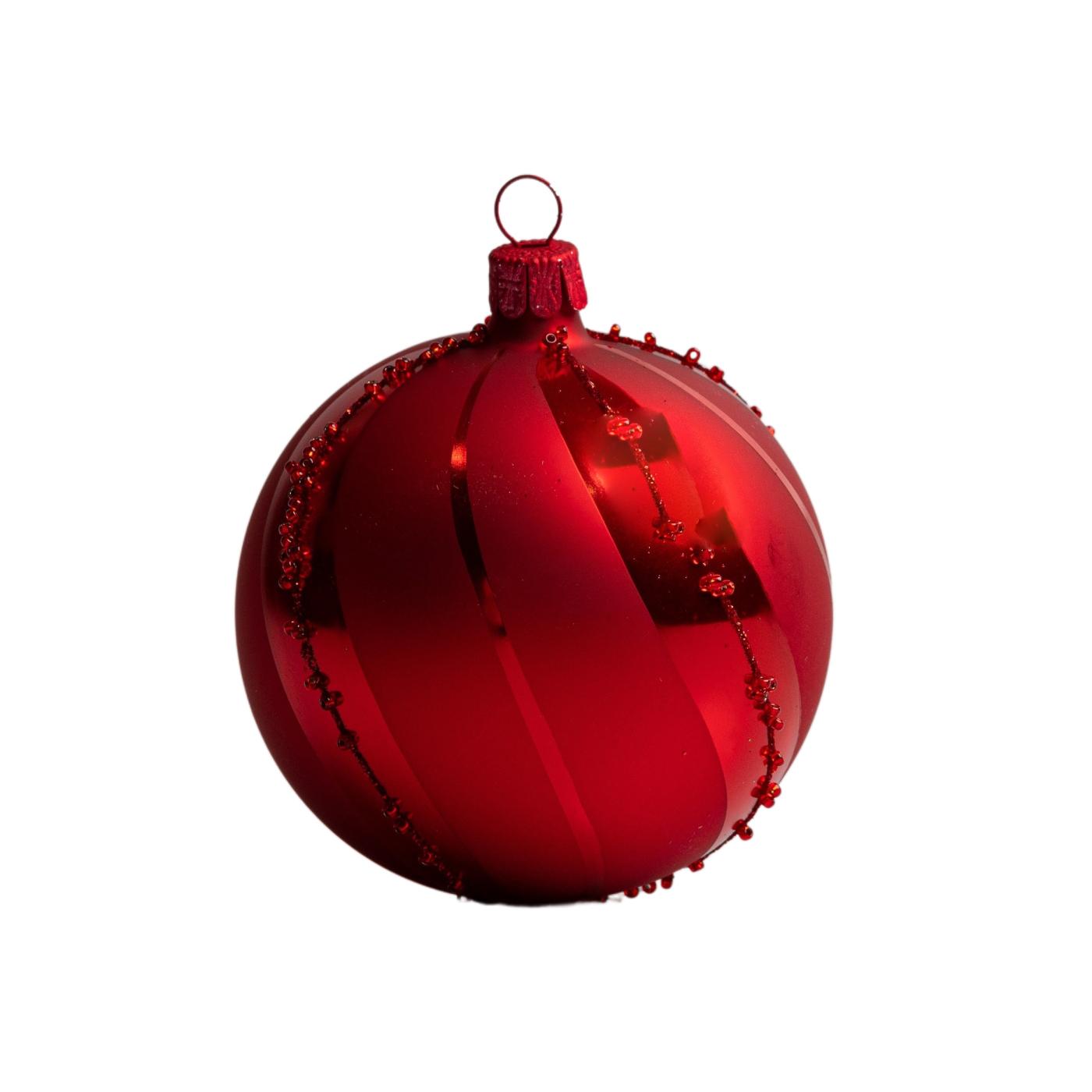 Sklenené vianočné ozdoby basic Red - Červené gule zdobené, 6 ks - popis: