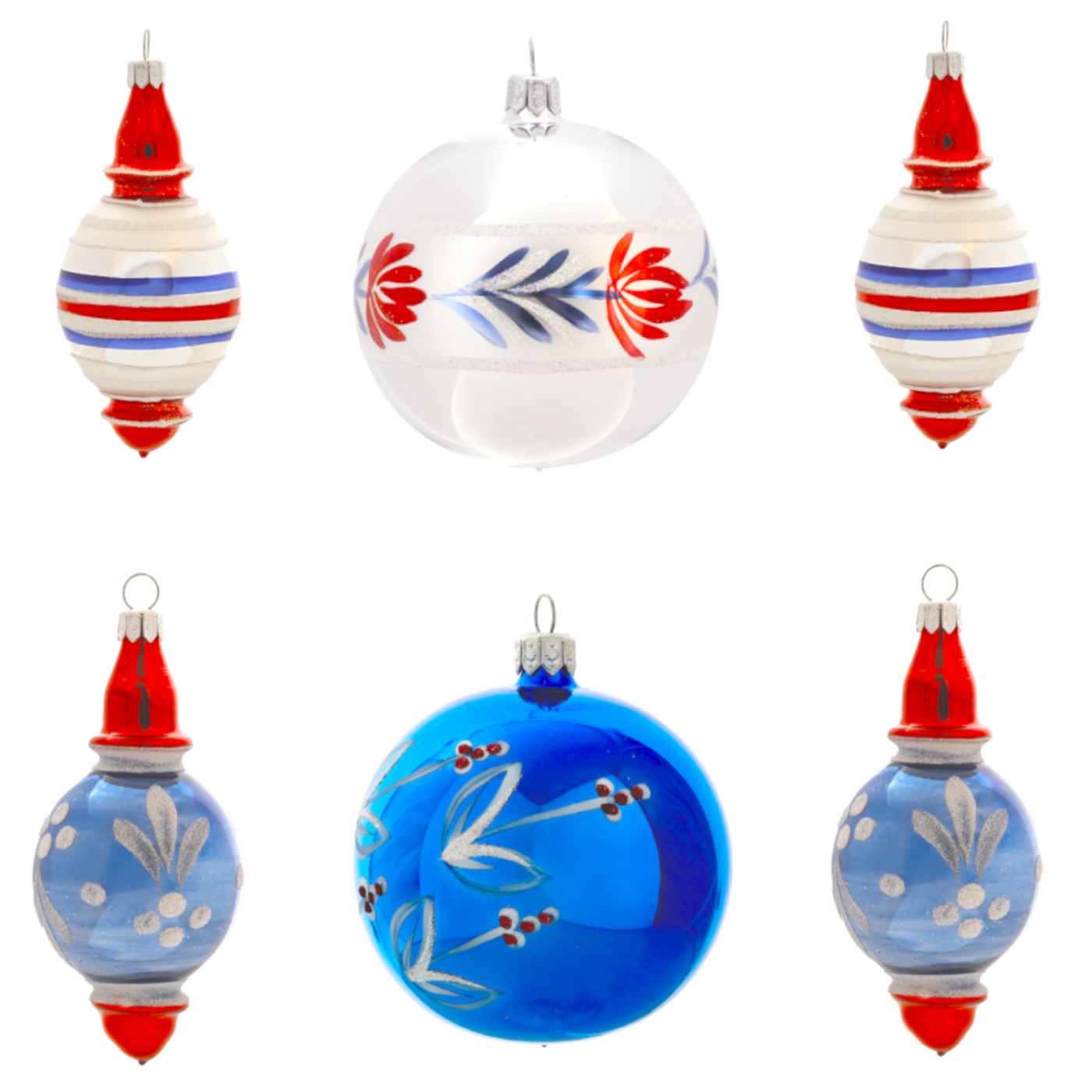 Kolekcia Domovina vznikla z túžby zachovať historické motívy a farebnosť prvých sklenených ozdôb v Čechách. Charakterizujú ju sýte farby na bielom podklade, folklórne motívy, kvety a dekory inšpirované českými krojmi a prírodou - akoby každá ozdoba našepkávala príbeh domova. Je určená pre tých, ktorí hľadajú tradíciu, teplo domova a poctivú ručnú prácu s odkazom na naše korene. Odporúčame ju kombinovať s prírodnými materiálmi, drevenými alebo slamenými ozdobami a klasickými tvarmi s jednoduchým zdobením.