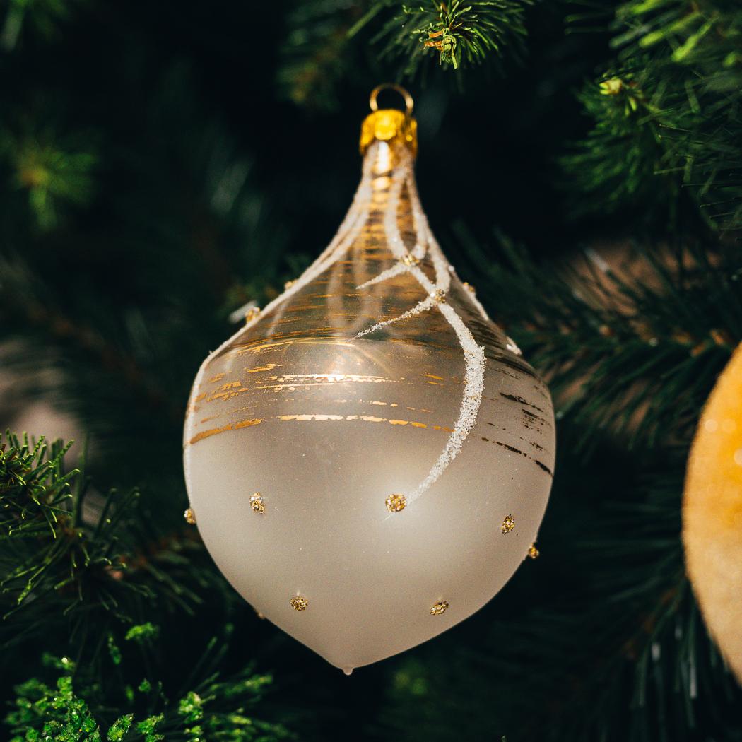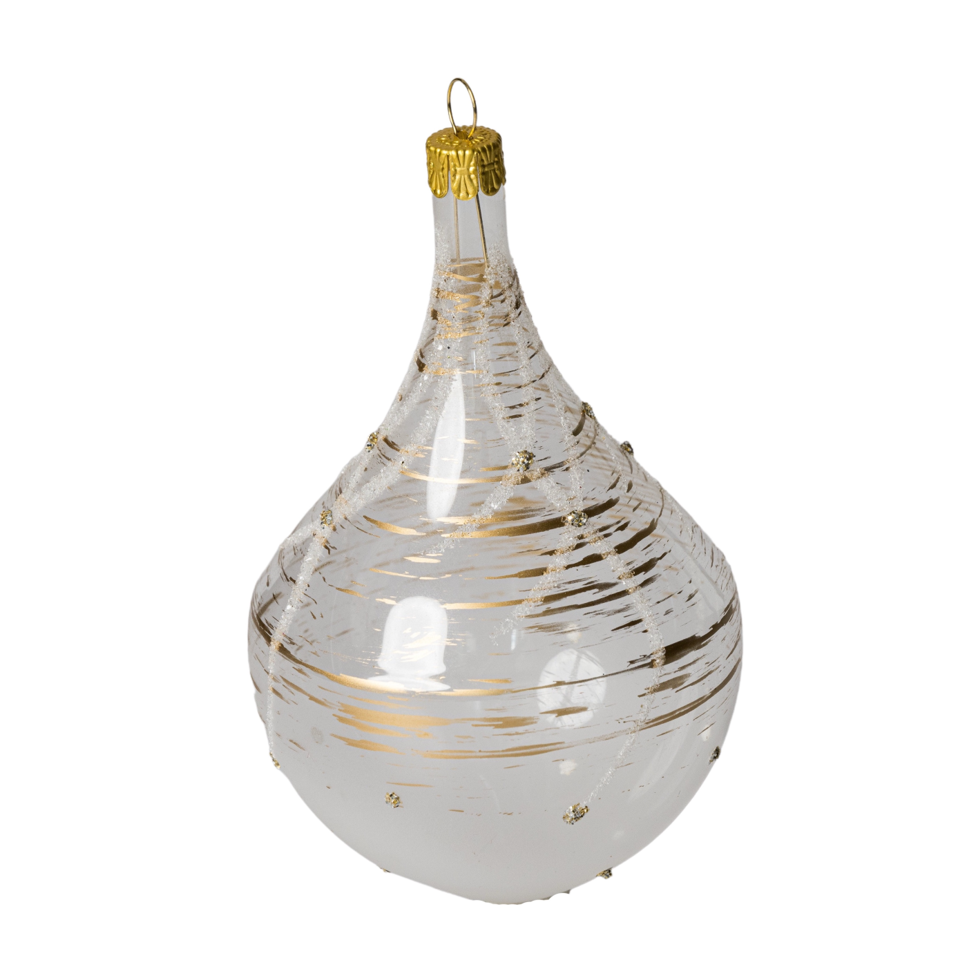 Sklenené vianočné ozdoby - Flakón číry so zlatou, 1ks