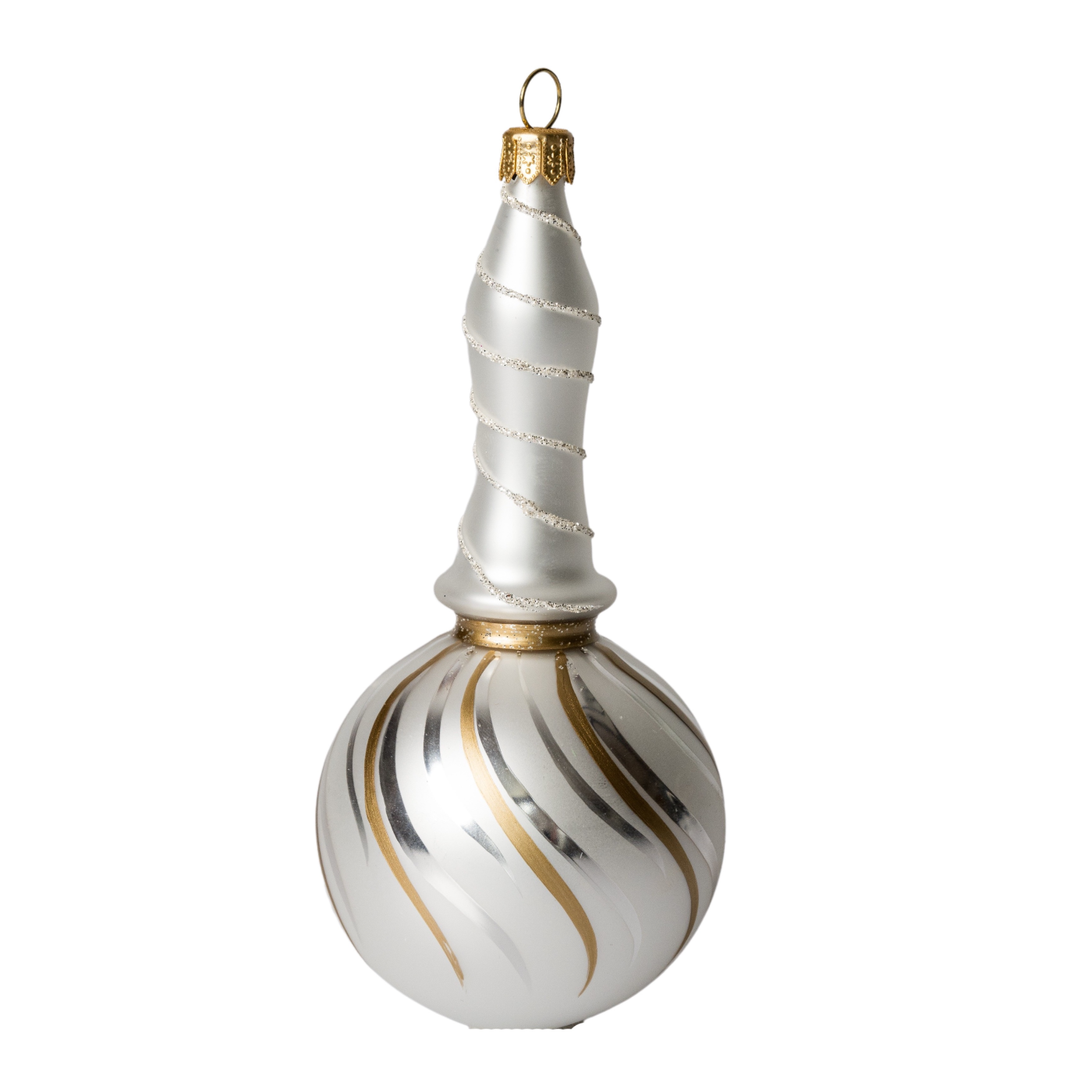 Biela a zlatá vianočná ozdoba Kvapka s esami (cca 12 cm)