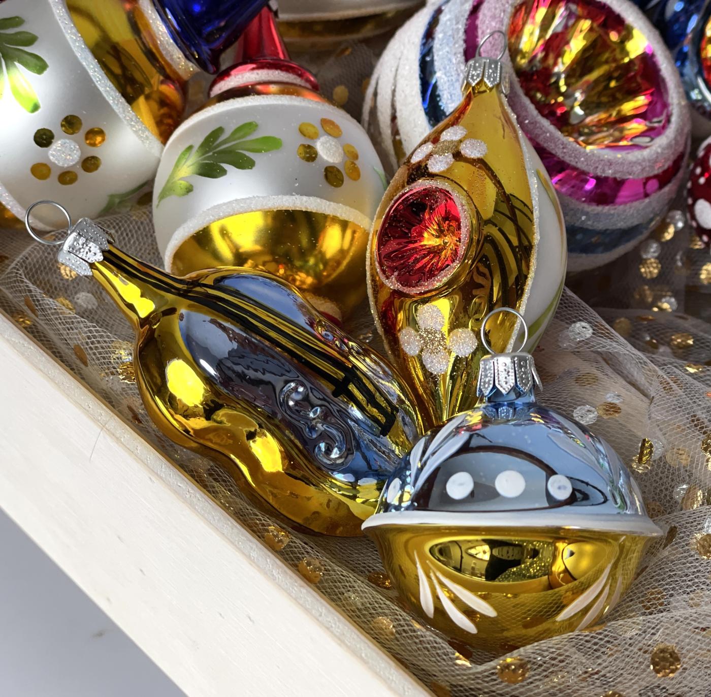 Kolekce Retro vznikla podle stejných archivních podkladů jako Domovina, ale nabízí pestřejší a hravější podobu prvních českých skleněných ozdob. Na tradičním bílém základu vynikají sytější barvy – růžová, zelená, žlutá i tóny modré a červené. Retro kolekce potěší všechny, kdo milují hravost a nostalgii, a zároveň se skvěle kombinuje s jednobarevnými ozdobami z kolekce Basic.