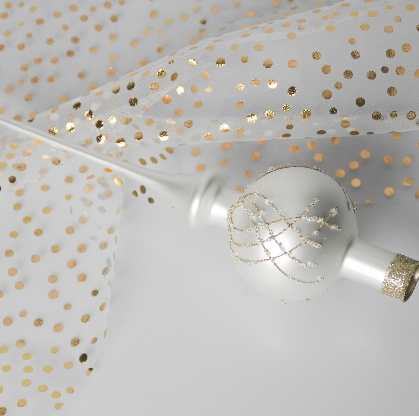 Biela a zlatá vianočná špica s jednou guľou (priemer 7 cm): prekrížené čiary(28 cm)