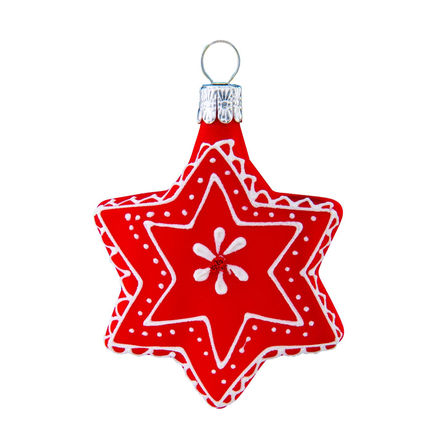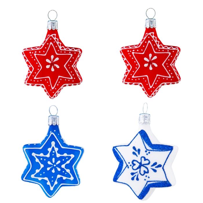 Sklenené vianočné ozdoby vlastenecké perníky - sada hviezdičiek, 4 ks - popis:
