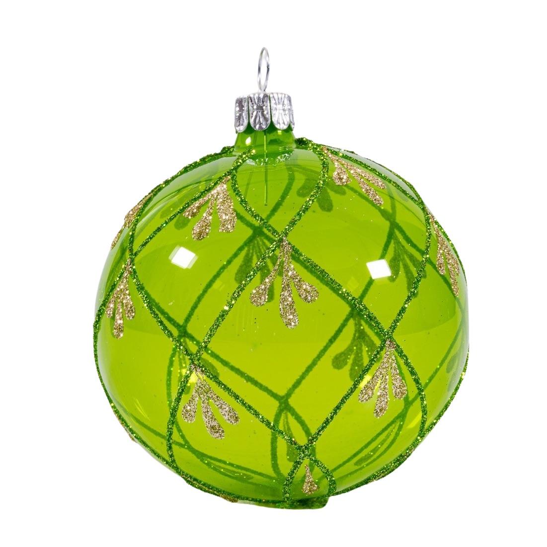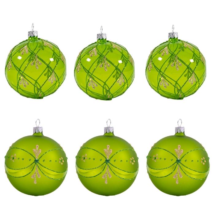 Sklenené vianočné ozdoby základné Mach - Machové gule číre zdobené, 6 ks