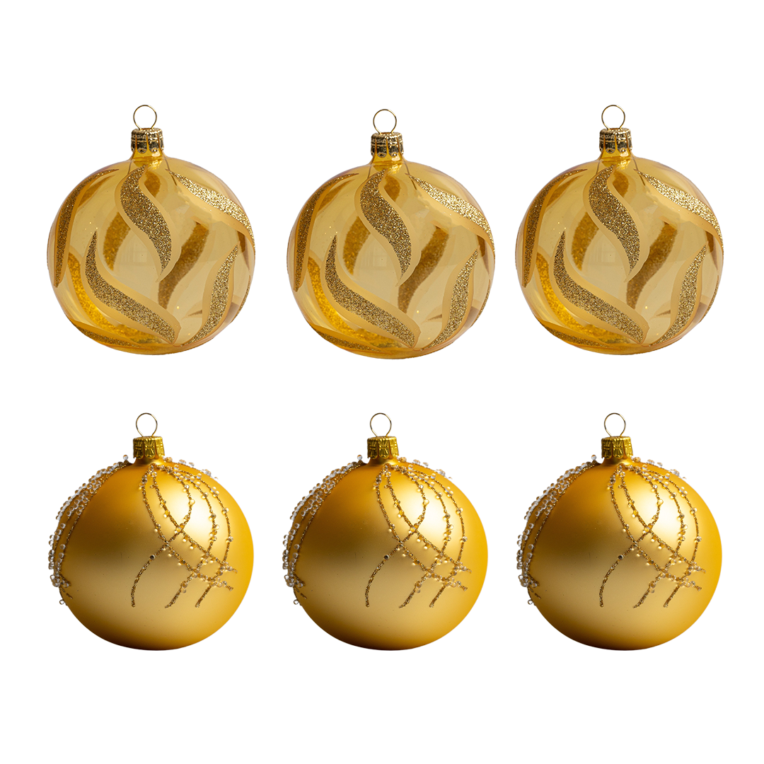 Základná sada Sunshine s krútenou dekoráciou 6 ks vianočných gúľ.
