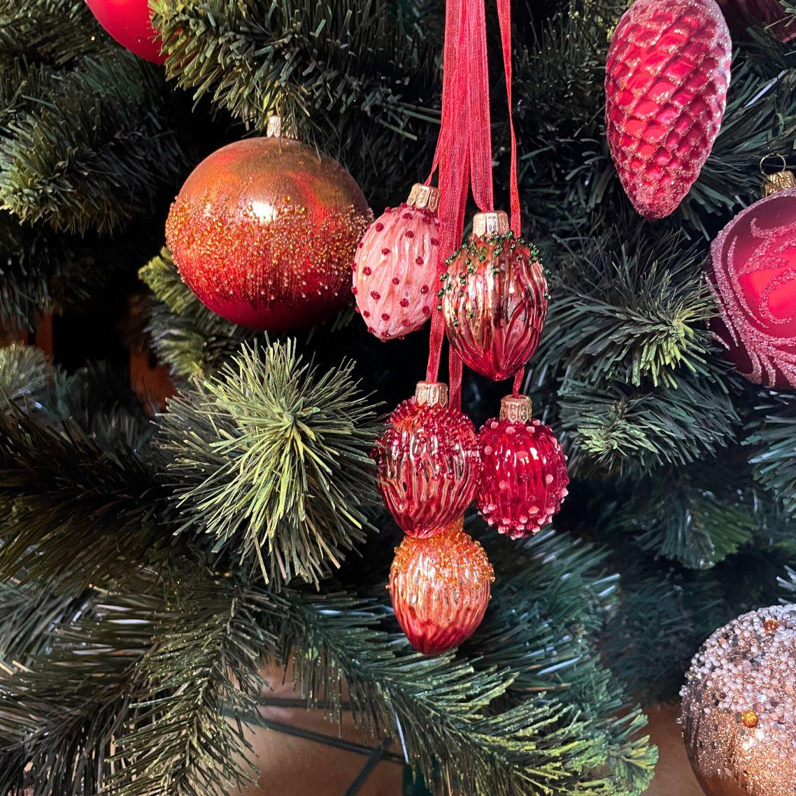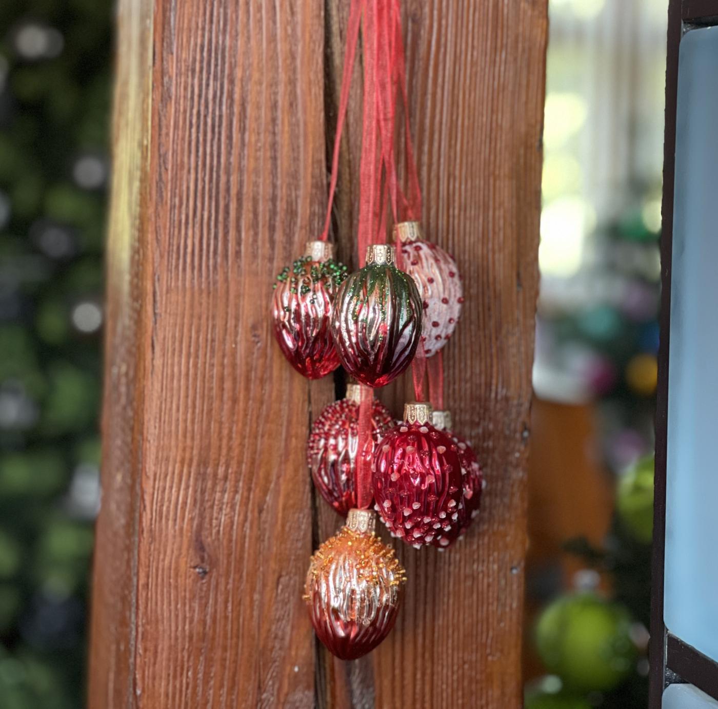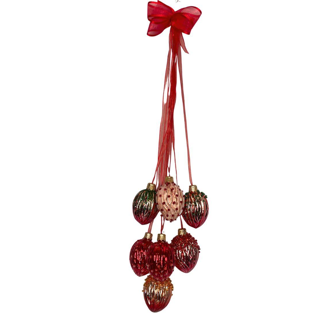 Sklenené vianočné ozdoby - Zväzok orechov červenej a zlatej farby, 1 ks - popis:
