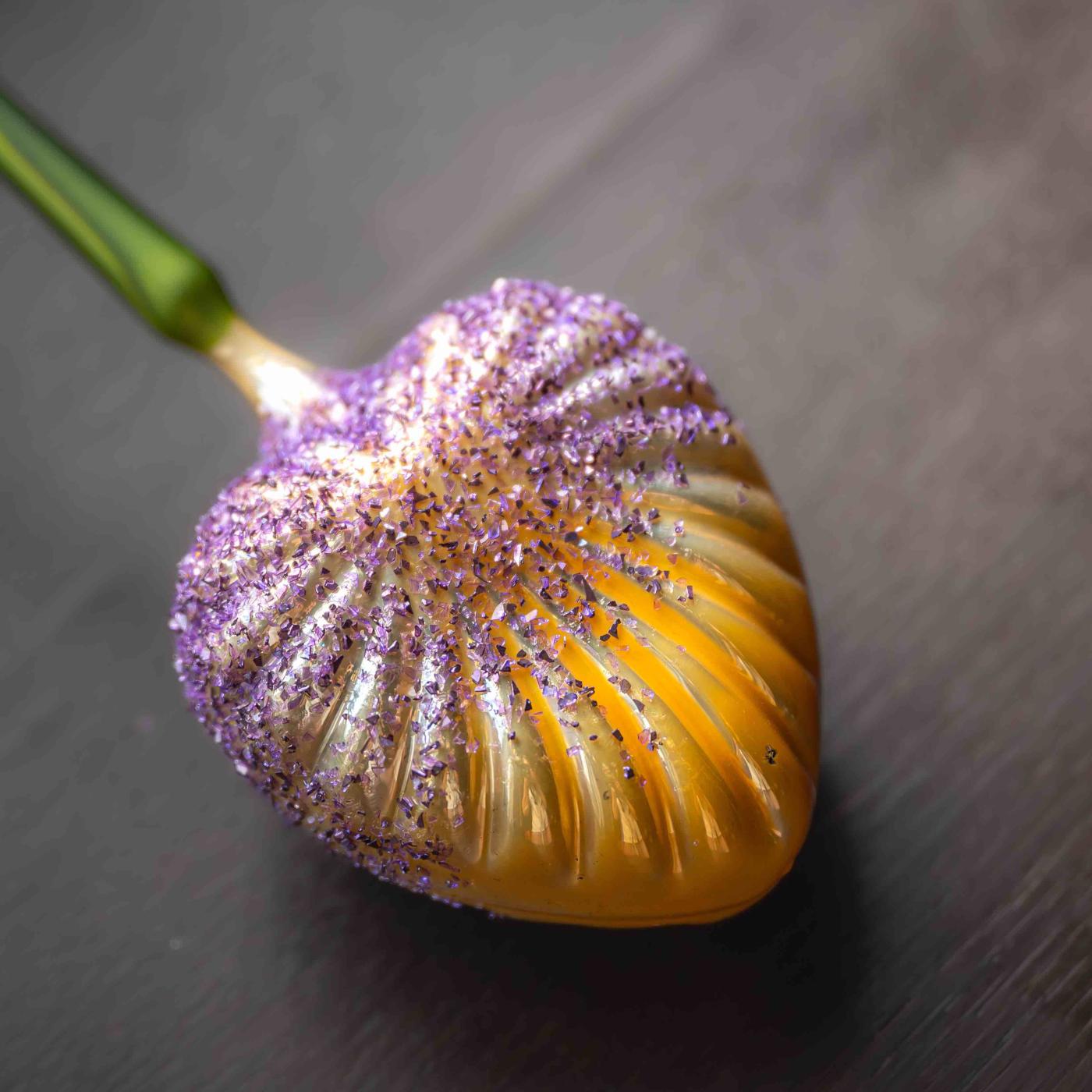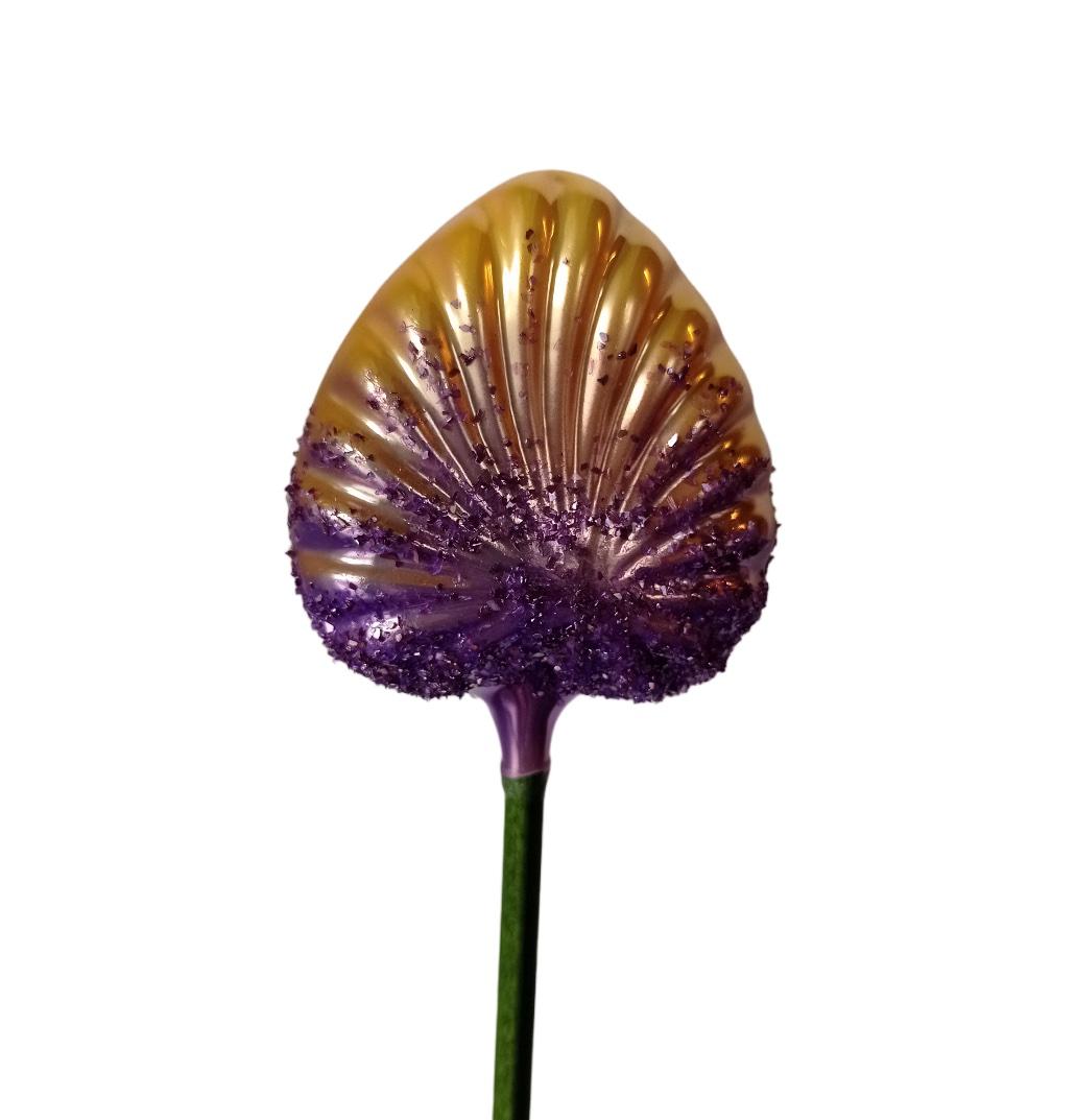 Ručne fúkaný sklenený ornament na drevenej stopke.