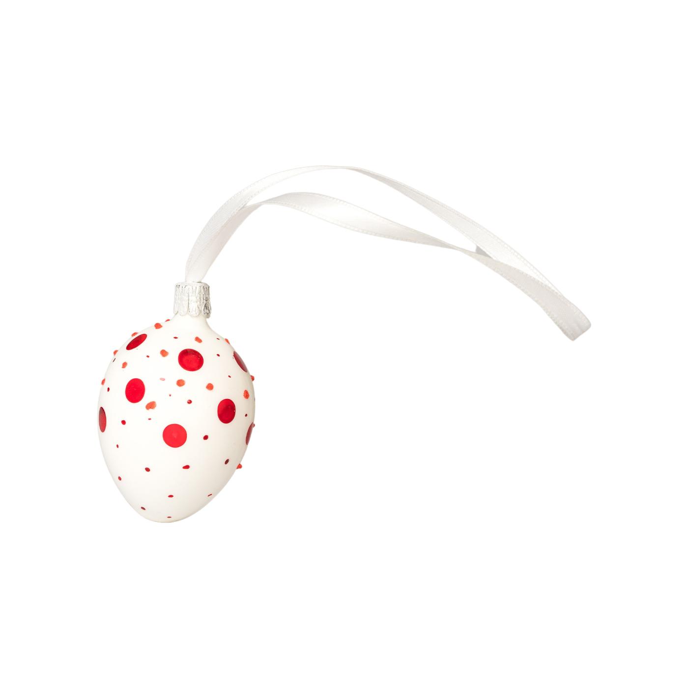 Sklenený ornament Veľkonočné vajíčka biele s bodkami rubínové