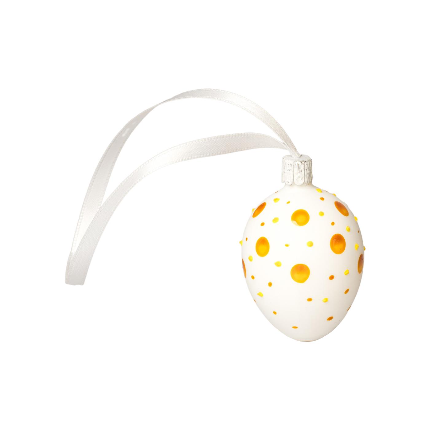 Sklenený ornament Veľkonočné vajíčka biele s bodkami žlté