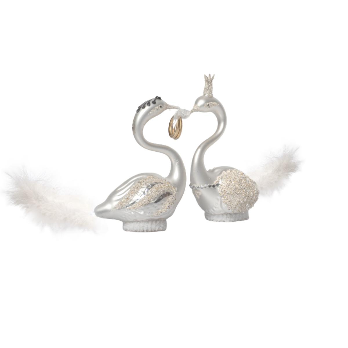Svatba je jedním z nejkrásnějších dnů v životě. Úžasnou a hlavně trvalou vzpomínkou na tento den můžou být svatební koule dle vašeho přání. Použijte svatební koule jako originální svatební dar pro novomanžele do jejich společného domova. Labutě jsou symbolem věrnosti, oddanosti, a i díky společné péči o mláďata se jejich vyobrazení používá například na svatebních oznámení jako poselství do nového manželství.Svatební labutí páry můžete použít jako dekoraci při této slavnostní události nebo mohou posloužit pro umístění snubních prstenů.