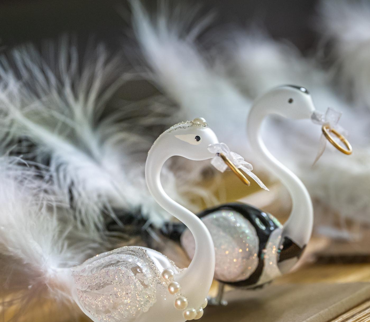 Svatba je jedním z nejkrásnějších dnů v životě. Úžasnou a hlavně trvalou vzpomínkou na tento den můžou být svatební koule dle vašeho přání. Použijte svatební koule jako originální svatební dar pro novomanžele do jejich společného domova. Labutě jsou symbolem věrnosti, oddanosti, a i díky společné péči o mláďata se jejich vyobrazení používá například na svatebních oznámení jako poselství do nového manželství.Svatební labutí páry můžete použít jako dekoraci při této slavnostní události nebo mohou posloužit pro umístění snubních prstenů.