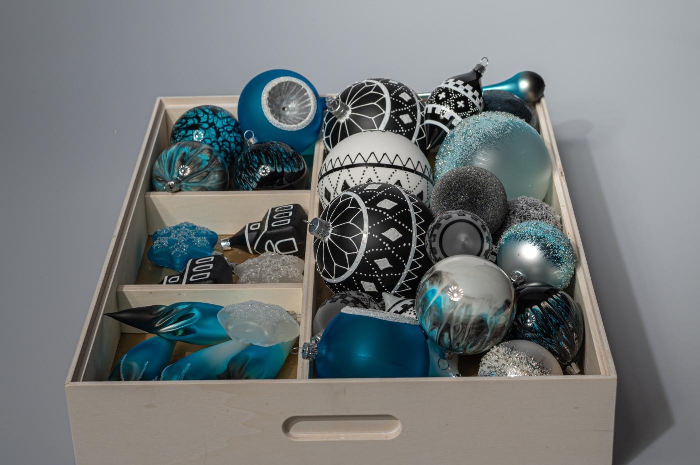 Skandinávska kolekcia je výnimočná nielen svojím pôvodom, ale aj výraznými vzormi a výberom farieb. Za všetkým stojí víťazka súťaže, ktorej hlavnou cenou bolo navrhnúť vlastnú kolekciu. Základ tvoria matné čierne ornamenty zdobené čisto bielymi vzormi alebo naopak - matné biele ornamenty s čiernymi dekormi. Tieto jednoduché, ale výrazné ornamenty dopĺňajú ornamenty v modrej farbe. Kolekcia poteší nielen obdivovateľov severských krajín a škandinávskeho štýlu, ale aj tých, ktorí si chcú svoj domov zariadiť jednoducho hygge - jednoducho relaxovať alebo len snívať... Škandinávsku kolekciu dokonale doplnia ozdoby v bielej, čiernej a modrej farbe, ktoré nájdete v našich základných kolekciách - Bianco, Nero, Ocean a Blue. Polovicu ozdôb by mali tvoriť gule a polovicu formy, sople a iné tvary.