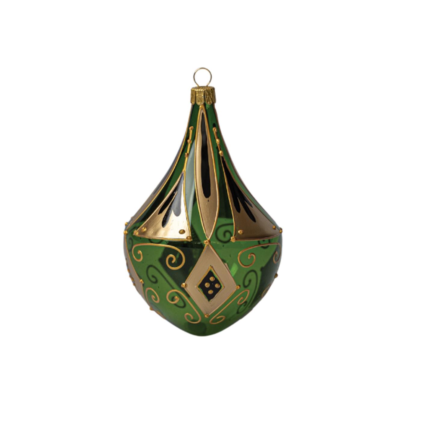 Vianočná dekorácia Secese - fľaša s čiernym a zlatým dekorom zelená, 1 ks